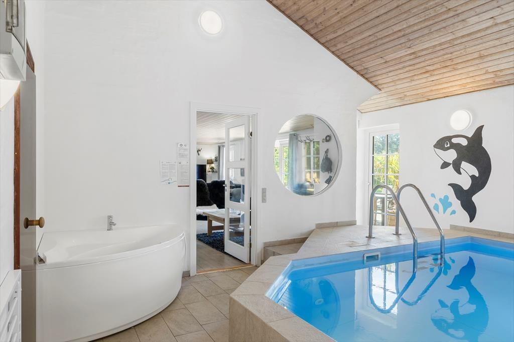 Träumst du von einem Urlaub, bei dem Platz für die ganze Familie oder Freunde ist, mit erstklassigen Einrichtungen und einer ruhigen Lage? In Kapelvej 1 in Nr. Vorupør erwartet dich ein schönes Ferienhaus mit allem, was das Herz begehrt – einschließlich eines großen Pools und der Möglichkeit, deinen vierbeinigen Freund mitzubringen.