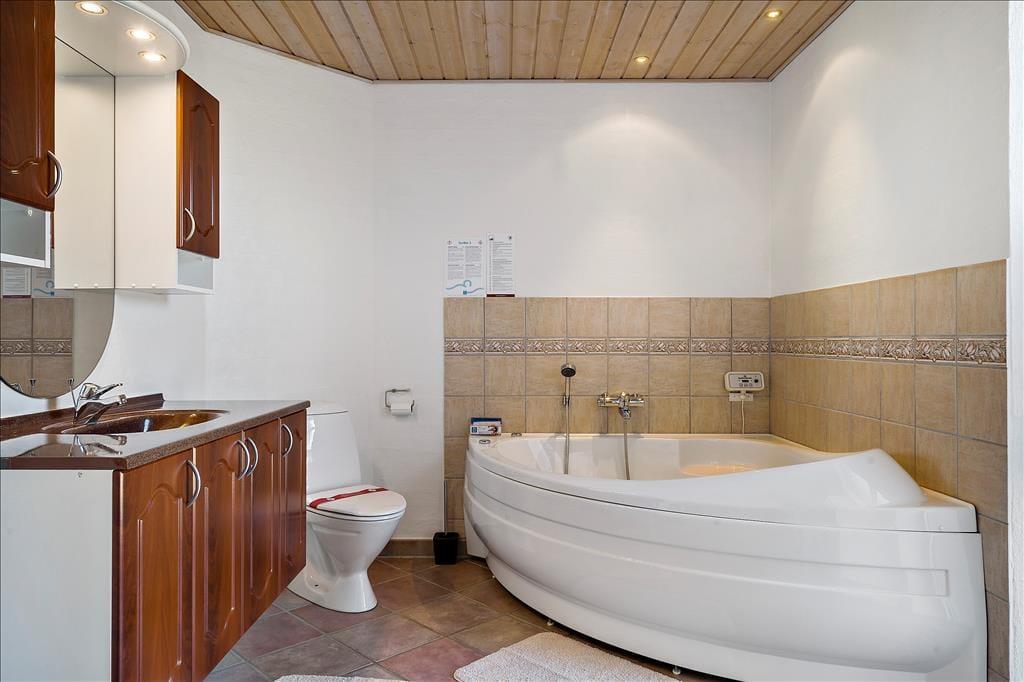 Betrete dieses helle und großzügige Ferienhaus, in dem Gemütlichkeit und Komfort Hand in Hand gehen. Der Wohnbereich lädt mit einem knisternden Kaminofen zu entspannten Stunden ein – ideal für gesellige Abende mit Familie und Freunden. Nach einem erlebnisreichen Tag kannst du dich im Whirlpool entspannen oder in der Sauna die wohlige Wärme genießen, die Verspannungen löst und für absolute Erholung sorgt. Dank moderner Fernwärme ist das Haus das ganze Jahr über angenehm beheizt. Hier erwarten dich unvergessliche Urlaubstage voller Behaglichkeit.