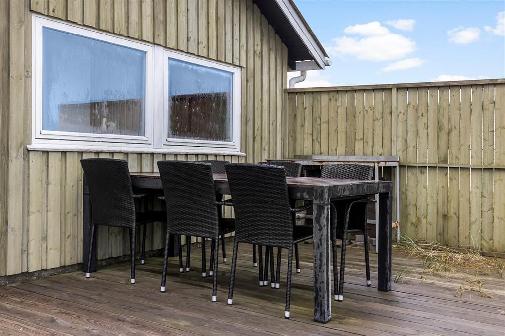 Draußen erwartet dich eine schöne, geschlossene Terrasse, die zu entspannten Stunden im Freien einlädt. Starte den Tag mit einer heißen Tasse Kaffee und genieße die frische Meeresluft. Die Terrasse ist teilweise überdacht, sodass du vor Sonne oder Wind geschützt bist. Während die Kinder – oder dein Hund – auf dem Grundstück spielen, kannst du dich mit einem guten Buch zurücklehnen oder den Duft von frisch gegrilltem Essen genießen.