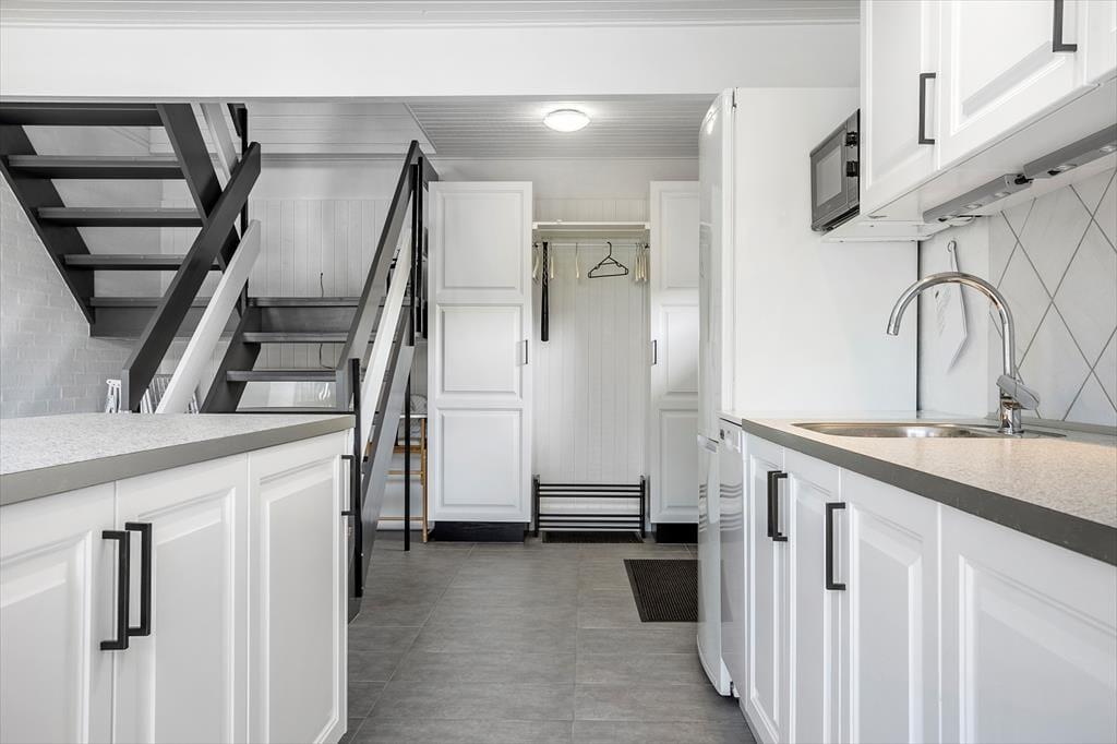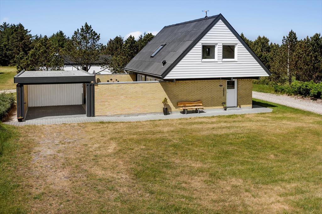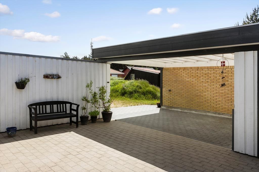 Auch draußen zeigt sich das Ferienhaus von seiner besten Seite: Die große Carport steht in offener Verbindung mit einem wunderbar geschützten Terrassenhof, in dem du dich ungestört sonnen, grillen oder einfach entspannen kannst. Ob Frühstück in der Morgensonne oder Abendessen unter dem Sternenhimmel – der Innenhof ist wie ein kleines, privates Paradies. Auch auf dem übrigen Grundstück findest du zahlreiche gemütliche Ecken, wo du die Natur genießen kannst. Alles ist darauf ausgerichtet, dir eine unvergessliche Auszeit zu bieten.