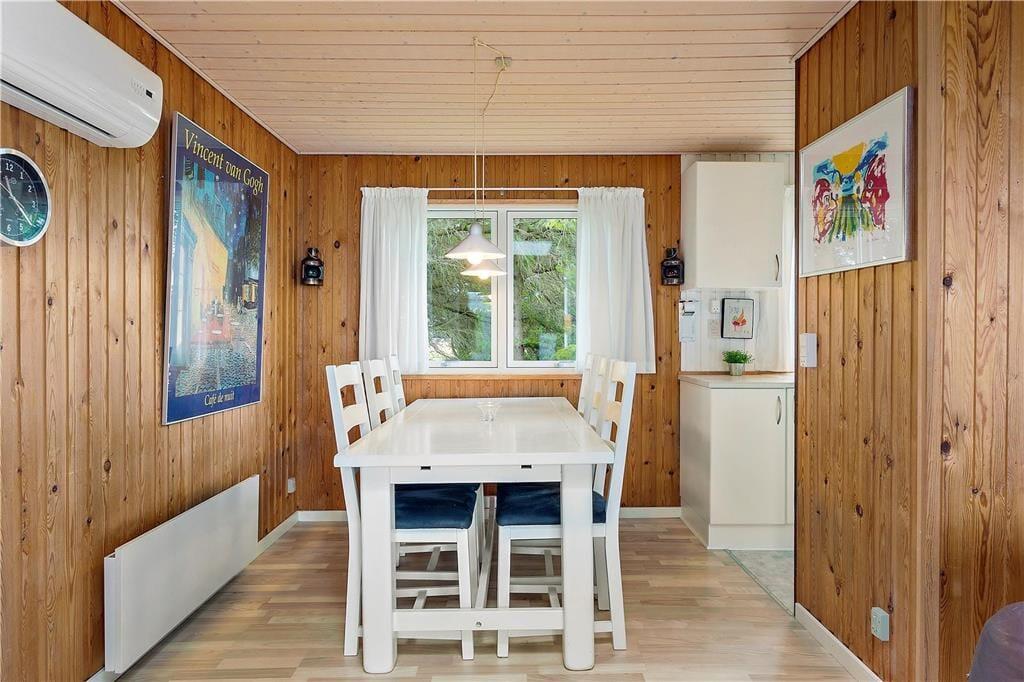 Wenn du das Ferienhaus auf Klemsvej 41 betrittst, empfängt dich eine warme und einladende Atmosphäre. Der klassische Ferienhausstil kombiniert mit modernem Komfort wie einer Wärmepumpe macht dieses Haus das ganze Jahr über zu einem idealen Rückzugsort. Hier kannst du die Familie um den Esstisch versammeln oder dich in dem hellen und einladenden Wohnzimmer entspannen. Die großen Fenster lassen die Natur herein und schaffen eine helle und angenehme Stimmung, die zu Entspannung und Gemütlichkeit einlädt.