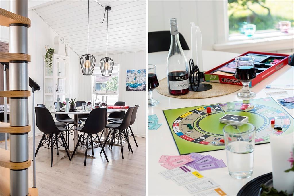 Sobald du dieses Ferienhaus betrittst, spürst du eine warme und einladende Atmosphäre. Das Haus ist geschmackvoll eingerichtet und verfügt über ein großzügiges Wohnzimmer mit Kaminofen, der an kühleren Abenden Wärme und Gemütlichkeit verbreitet. Hier gibt es reichlich Platz, damit die ganze Familie zusammenkommen kann – sei es bei Gesellschaftsspielen, Filmabenden oder einfach nur, um die gemeinsame Zeit zu genießen. Dank der offenen Raumaufteilung zwischen Küche und Wohnbereich kannst du zusammen sein, egal ob du kochst oder dich auf dem Sofa entspannst. Mit Platz für bis zu acht Personen ist das Ferienhaus ideal für große Familien oder Gruppen von Freunden – und Haustiere sind natürlich auch willkommen.