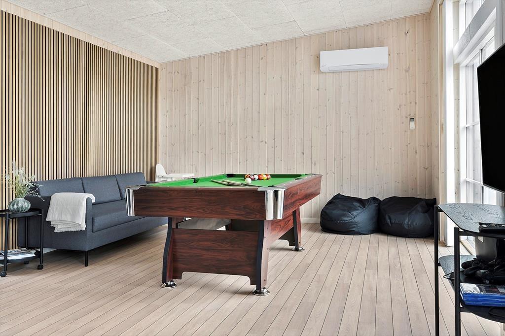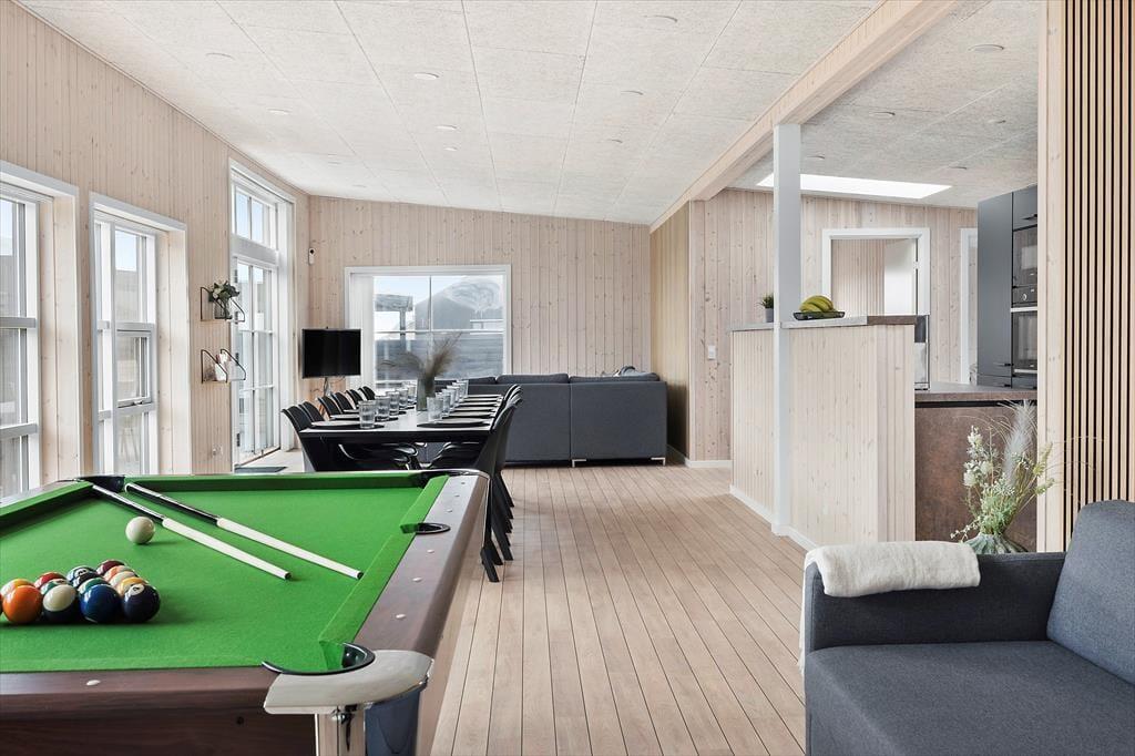 Betritt dieses geschmackvoll eingerichtete Ferienhaus, das sich sofort wie ein Zuhause anfühlt. Das helle, moderne Design schafft eine warme Atmosphäre, in der sich alle wohlfühlen können. Der Star des Hauses ist zweifellos der Aktivitätsraum mit einem Billardtisch, der stundenlangen Spaß für die ganze Familie garantiert. Nach einem aktiven Tag könnt ihr euch in den gemütlichen Wohnbereichen entspannen und die Zeit mit Familie und Freunden genießen. Mit mehreren Schlafzimmern bietet das Haus ausreichend Platz für große Familien oder zwei Familien, die den Urlaub gemeinsam verbringen möchten. Moderne Einrichtungen sorgen für maximalen Komfort.