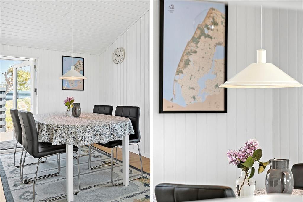 Das Ferienhaus auf Bredkærvej 33 empfängt dich mit einer warmen und einladenden Atmosphäre. Die Einrichtung verbindet klassischen Ferienhausstil mit modernen Annehmlichkeiten. Der Kamin bildet das Herz des Wohnzimmers und sorgt an kühleren Tagen für wohlige Wärme – perfekt für gemütliche Stunden mit einem guten Buch oder einem Gesellschaftsspiel. Die offene Verbindung zwischen Wohnzimmer und Küche macht es einfach, gemeinsam Zeit zu verbringen, egal ob beim Kochen oder Entspannen. Hier können bis zu sechs Personen komfortable Urlaubstage verbringen.