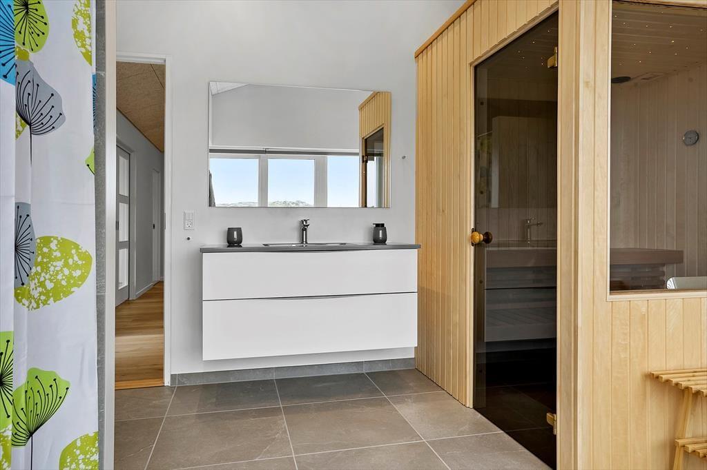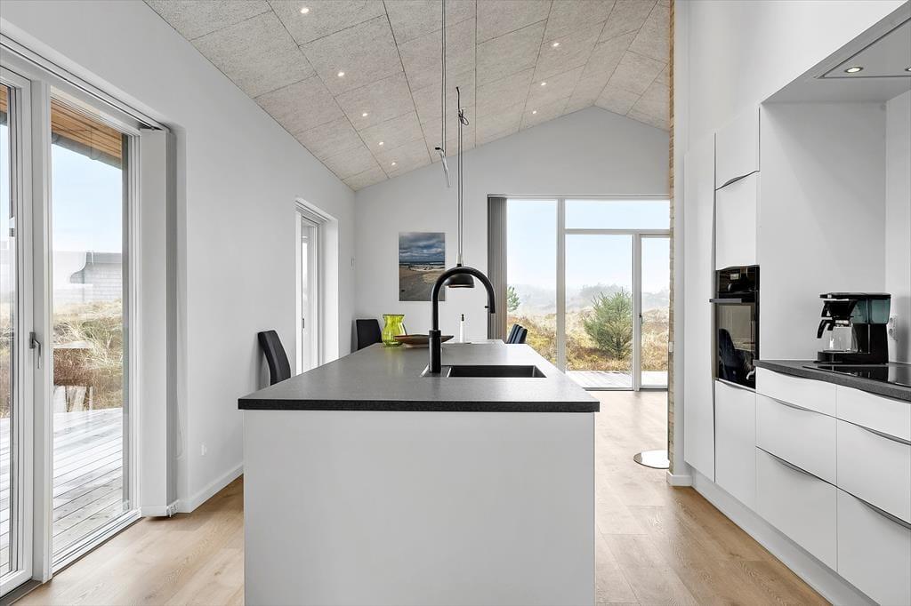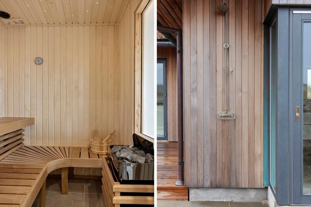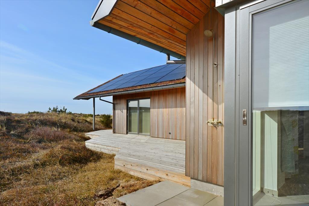 Draußen öffnet sich das Ferienhaus zu mehreren großen Terrassenbereichen, auf denen du den ganzen Tag die Sonne genießen kannst. Die schön angelegten Terrassen bieten dir sowohl Entspannung als auch Aktivitäten. Hier kannst du deinen Kaffee in Ruhe genießen, während die Sonnenstrahlen dich wärmen, oder dich mit Familie und Freunden zu einem leckeren Abendessen am Grill versammeln, wenn der Abend anbricht. Das energieeffiziente Ferienhaus ist mit einer Solaranlage ausgestattet, sodass du den Komfort und die Wärme im Haus genießen kannst, während du gleichzeitig etwas Gutes für die Umwelt tust.