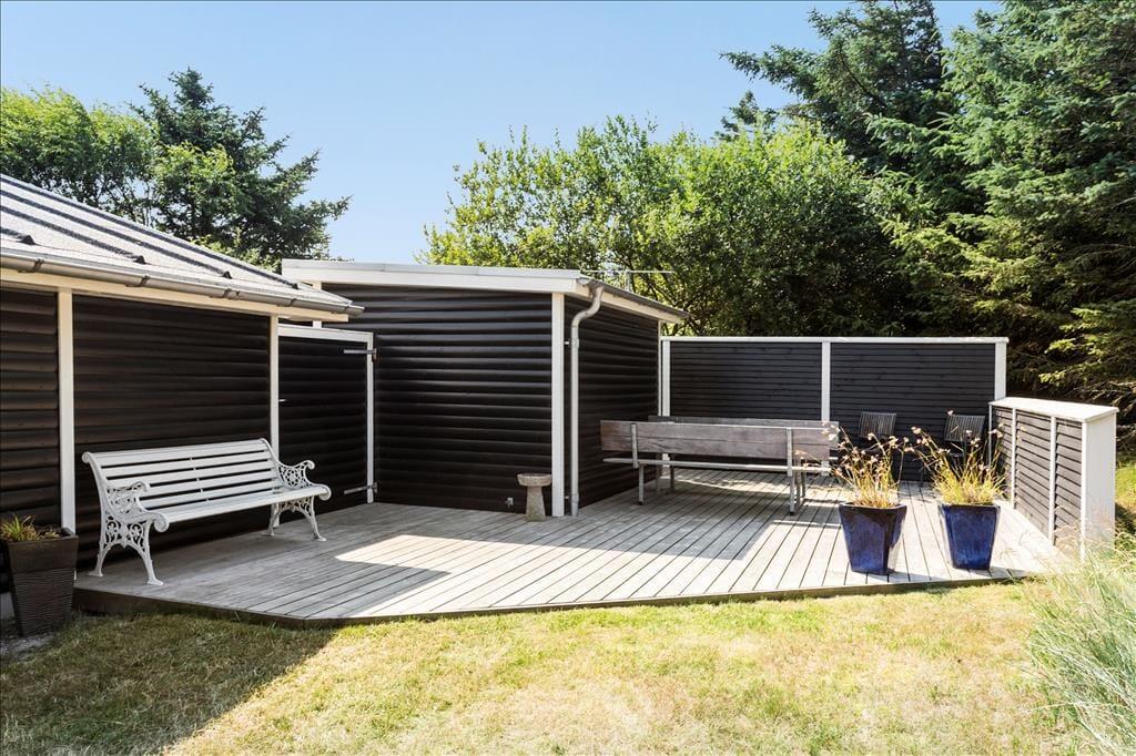 Draußen erwartet dich eine gemütliche Terrasse und ein ruhiges Grundstück, ideal für Entspannung und Spiele. Die Terrasse ist perfekt für den Morgenkaffee, während die Sonne über der charmanten Landschaft von Vorupør aufgeht, oder für gesellige Grillabende mit der Familie. Mit Platz für Aktivitäten und Spiele ist dies ein Paradies für Groß und Klein – auch für die vierbeinigen Gäste. Das Ferienhaus liegt in einer Sackgasse, sodass du die Ruhe der Natur in vollen Zügen genießen kannst – vom Zwitschern der Vögel bis zum Rascheln der Blätter im Wind.