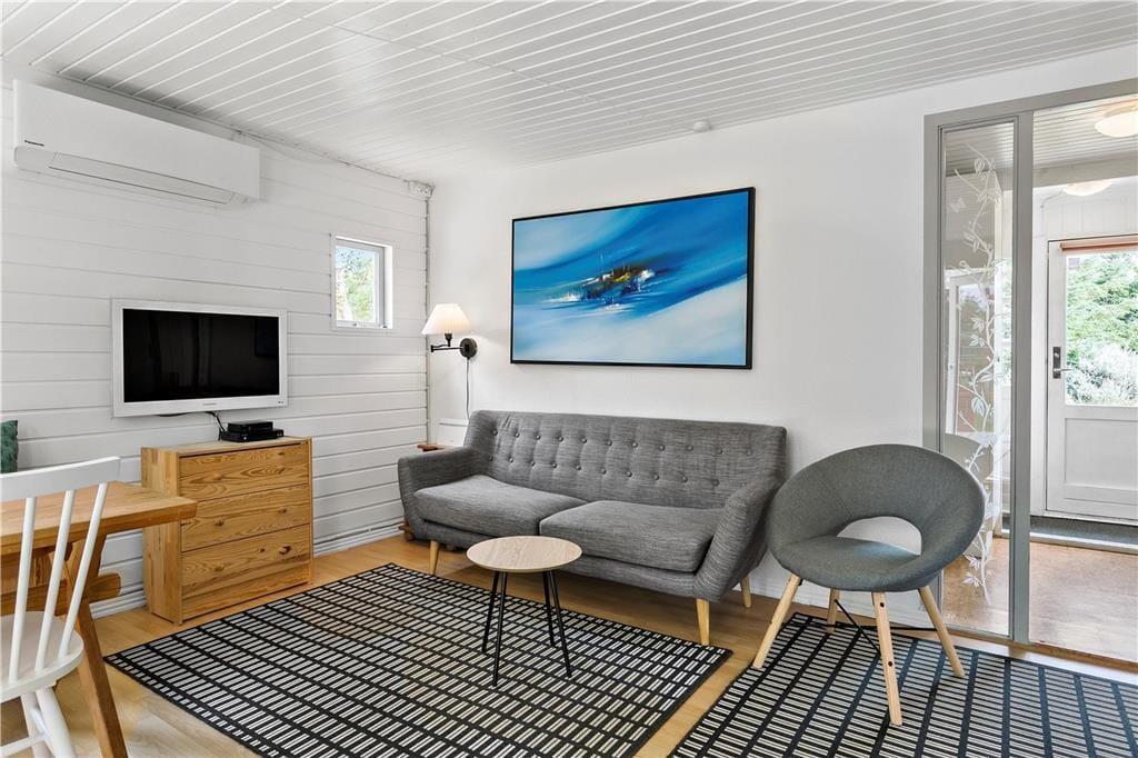 Dieses kleine Ferienhaus lädt dich ein, die Ferien in aller Gemütlichkeit zu verbringen. Der Kaminofen im Wohnzimmer schafft eine besondere Atmosphäre, die zu geselligen Abenden mit Brettspielen oder einem guten Buch einlädt. Mit Platz für 4 Personen ist das Haus ideal für eine kleine Familie oder zwei Personen, die ein Ferienhaus mit Persönlichkeit und Charme suchen. Die funktionelle Einrichtung der Küche und des Wohnbereichs sowie die großen Fenster mit Blick auf die naturbelassene Umgebung machen deinen Aufenthalt perfekt.