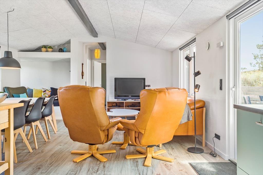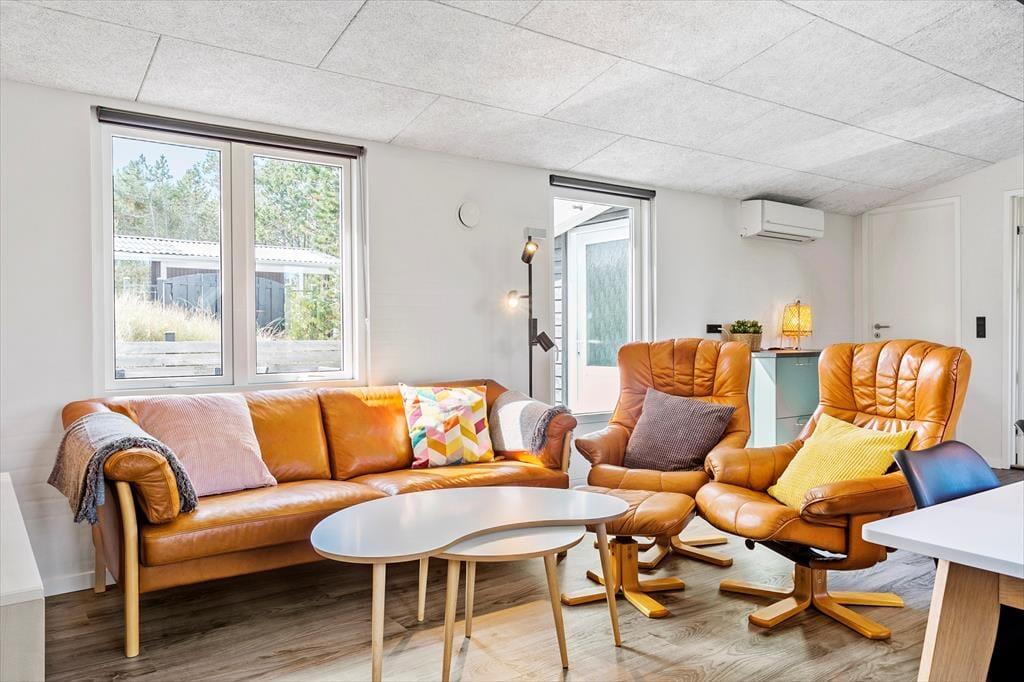 Das Ferienhaus auf der Blåbærvej 16 ist geschmackvoll und modern eingerichtet, was eine helle und gemütliche Atmosphäre schafft. Mit Platz für 6 Personen eignet es sich ideal für Familien oder Gruppen von Freunden, die eine gemeinsame Auszeit genießen möchten. Dank der energieeffizienten Wärmepumpe bietet das Haus das ganze Jahr über ein angenehmes Raumklima. Nach einem erlebnisreichen Tag kannst du dich im weichen Sofa entspannen und die ruhige, einladende Umgebung genießen, während das Tageslicht durch die großen Fenster strömt.