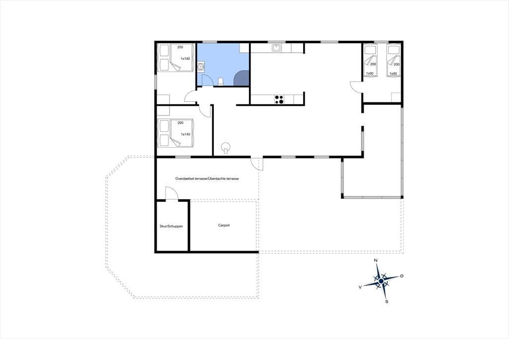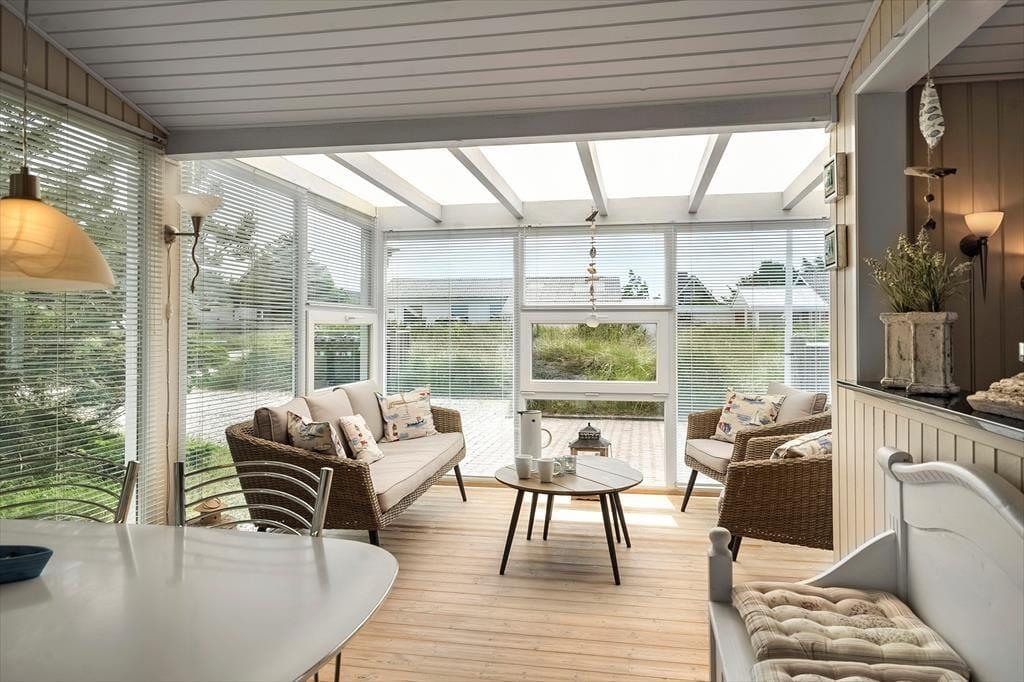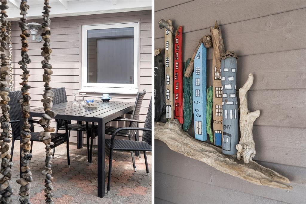 Draußen erwartet Sie eine große und teilweise überdachte Terrasse, auf der Sie Ihren Morgenkaffee in der Sonne genießen oder köstliche Mahlzeiten auf dem Grill zubereiten können, während Sie dem Vogelgesang lauschen. Die Terrasse ist mit komfortablen Gartenmöbeln und Liegestühlen ausgestattet, die zu Entspannung und Sonnenbaden einladen. Das umliegende Naturgrundstück bietet den Kindern Platz zum Spielen und Entdecken, während die Erwachsenen in der naturschönen Umgebung Ruhe und Erholung finden können. Nach einem erlebnisreichen Tag ist es wunderbar, sich in den Wintergarten zurückzuziehen, wo Sie die Abendsonne und die besondere Atmosphäre der dänischen Sommerabende genießen können.