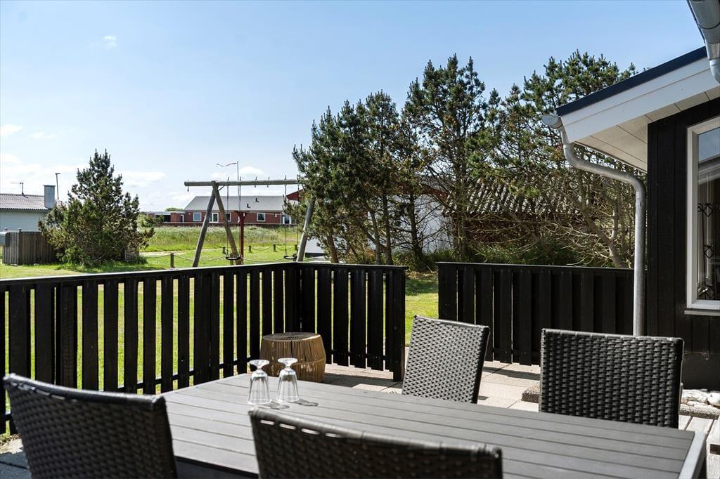 Das Ferienhaus ist von einer schönen Terrasse umgeben, auf der du deinen Morgenkaffee in der Sonne genießen oder abends grillen kannst, während die Sonne über den Dünen untergeht. Der eingezäunte Garten bietet eine sichere Umgebung für Kinder und Haustiere, während die Erwachsenen mit einem guten Buch oder einem Glas Wein entspannen können. Durch die Lage am Ende einer ruhigen Sackgasse kannst du hier absolute Ruhe und Entspannung genießen.