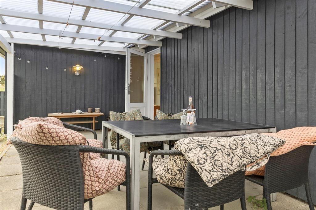 Wenn sich das Wetter von seiner besten Seite zeigt, kannst du auf die gemütliche Terrasse treten und die Sonne auf deinem Gesicht spüren. Die Terrasse bietet viel Platz für einen entspannten Morgenkaffee in den frühen Stunden oder für lange Grillabende unter freiem Himmel. Auf dem ruhigen Grundstück können Kinder ungestört spielen, während du dich in einem Liegestuhl entspannst. Die einzigartige Natur von Vorupør liegt direkt vor der Tür – ein Tagesausflug zum Strand oder ein erfrischender Spaziergang durch die Dünen sind ideale Möglichkeiten, die Umgebung zu erkunden. Hier ist es leicht, sich von der Schönheit der Nordsee und der entspannten Urlaubsstimmung mitreißen zu lassen.