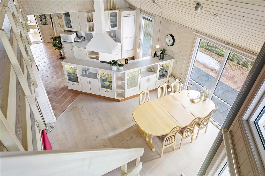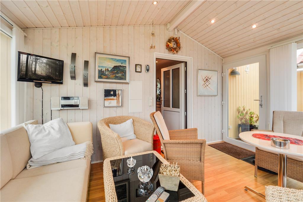 Dieses Ferienhaus strahlt Gemütlichkeit und Entspannung aus. Hier kannst du mit Familie oder guten Freunden eine wundervolle Auszeit genießen und den Alltag hinter dir lassen. Im Herzen des Hauses, dem hellen und geschmackvoll eingerichteten Wohnzimmer, kannst du dich in die weichen Möbel sinken lassen, während der Kaminofen im Hintergrund knistert und eine wohlige Atmosphäre schafft. Die großen Fenster sorgen für viel natürliches Licht und lassen die Natur auch drinnen hautnah spüren. Die offene und funktionale Küche ermöglicht es dir, köstliche Mahlzeiten zuzubereiten, während du dich mit deinen Liebsten am Esstisch unterhältst.