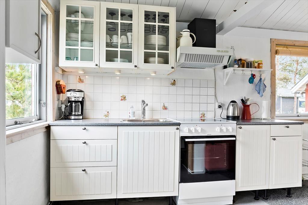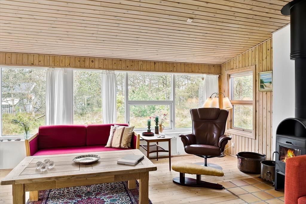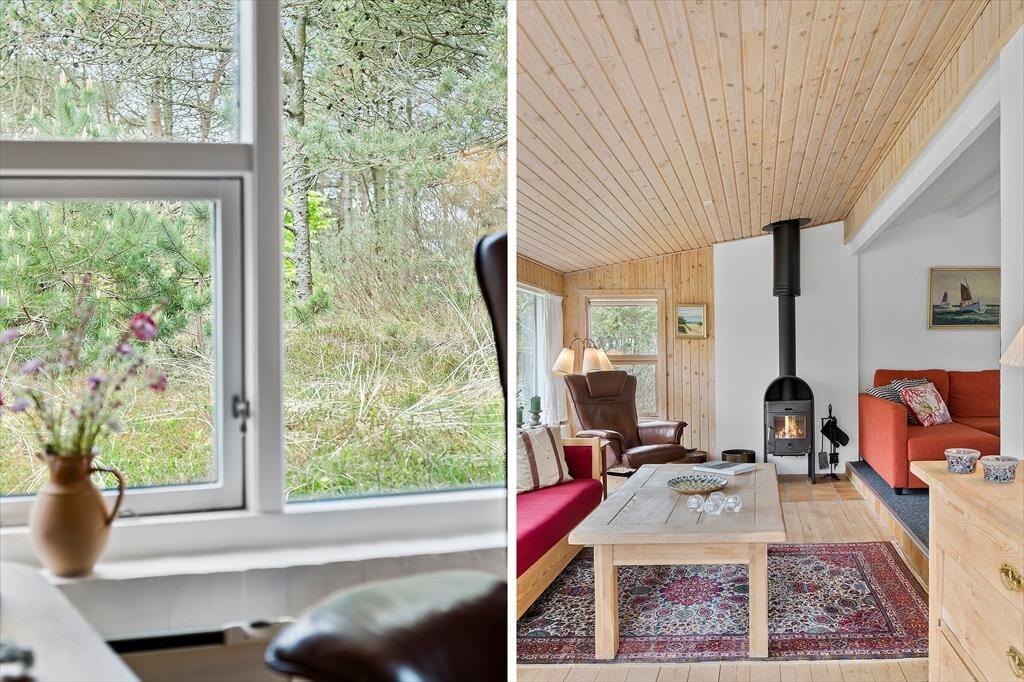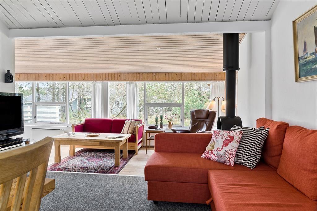 Wenn du dieses Ferienhaus betrittst, empfängt dich sofort eine authentische Sommerhausatmosphäre, die zum Entspannen einlädt. Die Einrichtung ist gemütlich und funktional mit warmen Holzelementen und einem Kaminofen, der an Tagen, an denen das Wetter eher nach einem Aufenthalt drinnen verlangt, zum Mittelpunkt wird. Stell dir einen Abend vor, an dem das Feuer im Kamin knistert, während du dich mit einem guten Buch auf dem Sofa einkuschelst oder mit der Familie ein Brettspiel spielst. Das Haus ist geräumig und bietet Platz für sechs Personen, sodass genügend Raum für gemeinsame Stunden, aber auch für ruhige Momente mit einer Tasse Kaffee in der Hand bleibt.