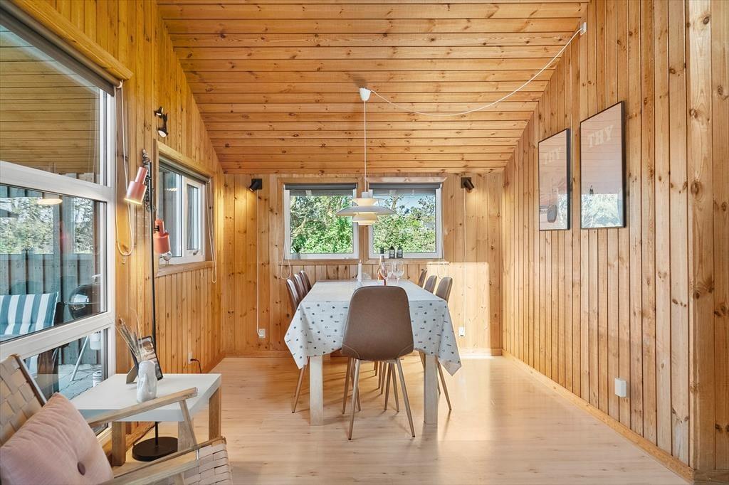 Etwas außerhalb des gemütlichen Stadtzentrums von Nr. Vorupør ist dieses charmante Sommerhaus. Von hier aus können Sie in wenigen Minuten die lokale Atmosphäre der Stadt mit gemütlichen Cafés und Restaurants, spannenden Geschäften und nicht zuletzt der frischen Meeresluft erreichen und genießen. Vorupør ist auch ein Paradies für Naturliebhaber. Machen Sie einen Spaziergang am Strand, wandern Sie durch die Dünen oder mieten Sie ein Fahrrad und erkunden Sie die Gegend. Der Nationalpark Thy bietet eine einzigartige Natur mit Meer, Fjord, Dünen, Mooren und Wäldern.