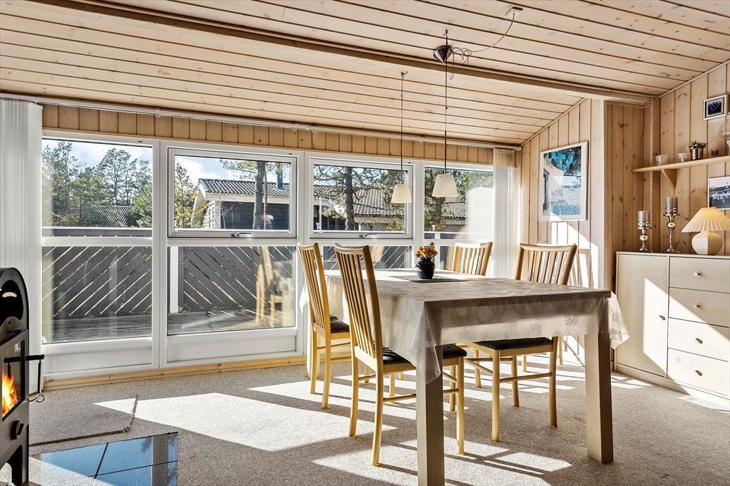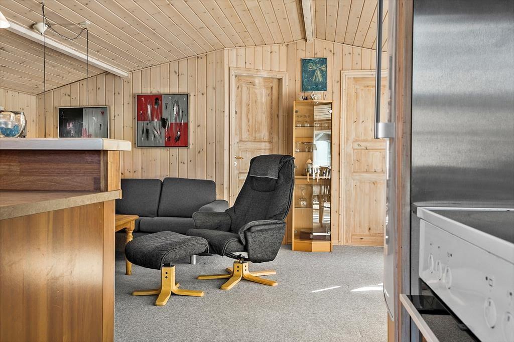 Der offene Grundriss sorgt für ein angenehmes Raumgefühl, und die großen Fenster lassen viel Tageslicht herein und verbinden das Innen- und Außenleben auf schönste Weise. Das Haus ist ideal für Familien mit Kindern oder befreundete Paare, die eine entspannte Basis inmitten der idyllischen Natur von Vorupør suchen.