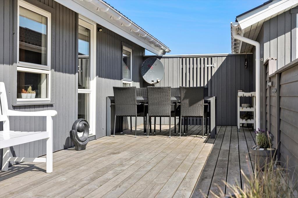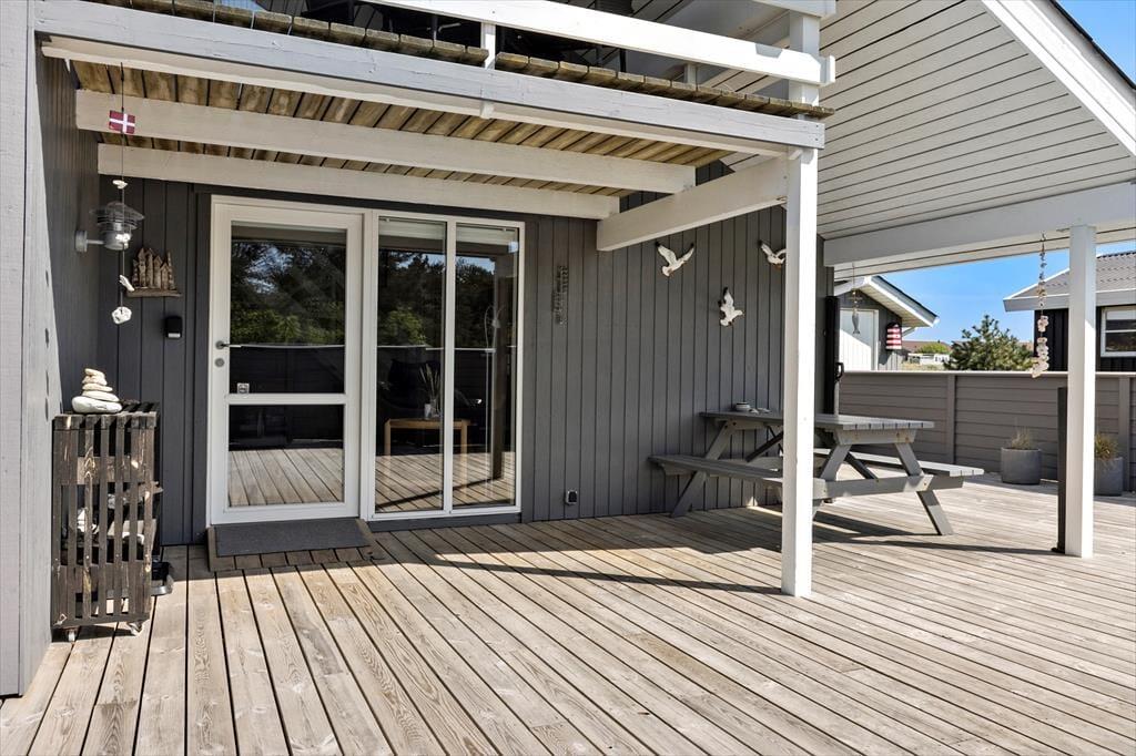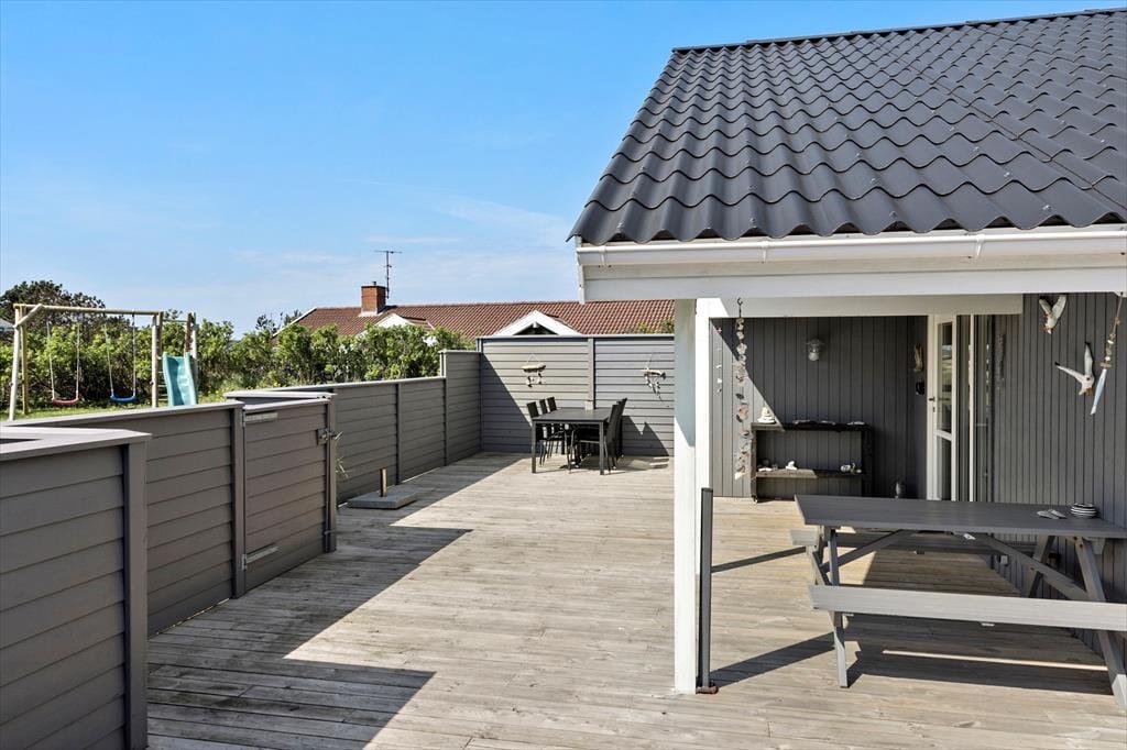 Auf einem herrlichen Grundstück am ruhigen Ende der Fiskervej gelegen, lädt dieses Ferienhaus zu reichlich Zeit im Freien ein. Die abgeschlossene Terrasse bietet Kindern die Möglichkeit, unbeschwert herumzutoben. Gleichzeitig können die Erwachsenen in den Gartenmöbeln entspannen, mit einer guten Tasse Kaffee in der Hand, während die Sonne wärmt und der Wind in den Dünen flüstert. Wenn der Abend naht, können Sie den Grill anheizen und das Mahl zu einem gemütlichen Moment unter freiem Himmel werden lassen. Von der Terrasse aus haben Sie einen Blick auf die umliegende Natur, die sowohl Vogelgezwitscher als auch eine erfrischende Brise vom Meer bietet. Ganz gleich, ob Sie Ruhe zur Entspannung oder Möglichkeiten für aktive Betätigung suchen, hier ist der perfekte Ort, um die Urlaubstage gemächlich verstreichen zu lassen.