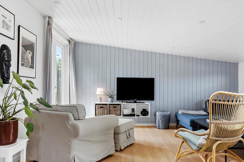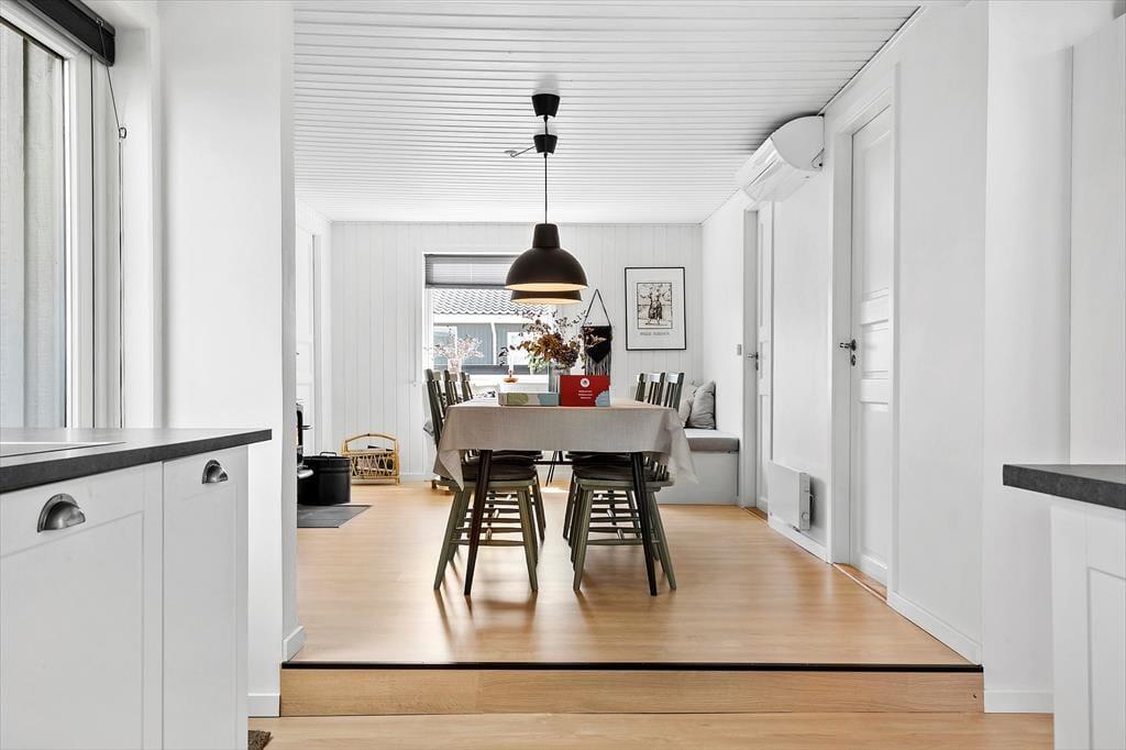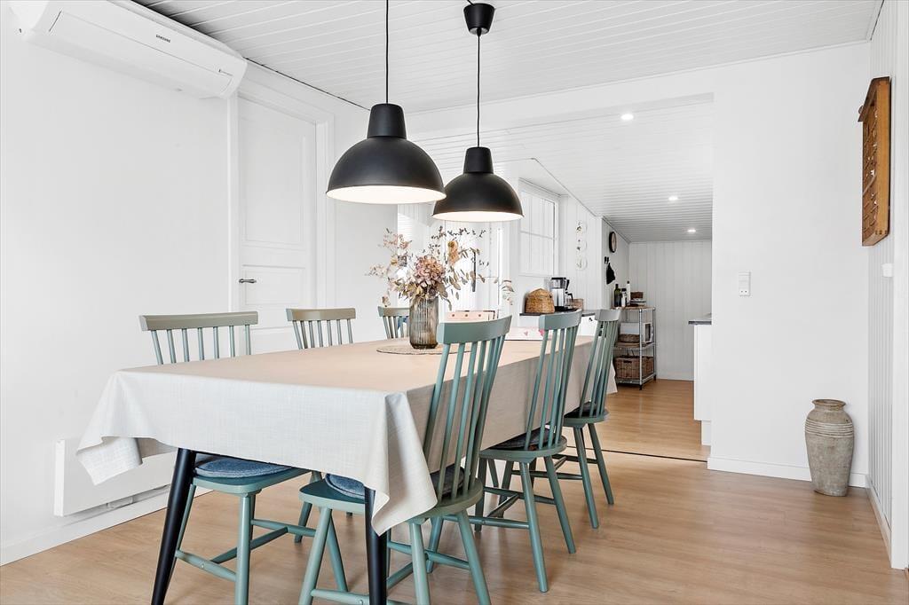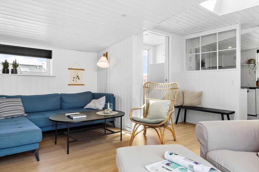 Keine Sorge, du wirst dich hier in der Nordsøvej 36 sofort wie zu Hause fühlen. Schon beim Betreten des hellen und einladenden Wohnzimmers umfängt dich eine warme Atmosphäre, in der das Knistern des Holzofens die perfekte Urlaubsstimmung schafft. Hier kannst du dich mit einem guten Buch aufs Sofa zurückziehen oder Familie und Freunde zu gemütlichen Abenden versammeln, bei denen ihr über alte Urlaubserinnerungen lacht und neue Abenteuer plant. Die Küche ist offen mit dem Wohnbereich verbunden, sodass du den gemeinschaftlichen Zusammenhalt nie verpasst, selbst wenn du das Essen vorbereitest. Das schlichte, aber stilvolle Interieur lädt zu Ruhe und Erholung ein, während große Fenster das Tageslicht hereinlassen und den Blick auf die wechselnden Farben der umliegenden Natur freigeben.