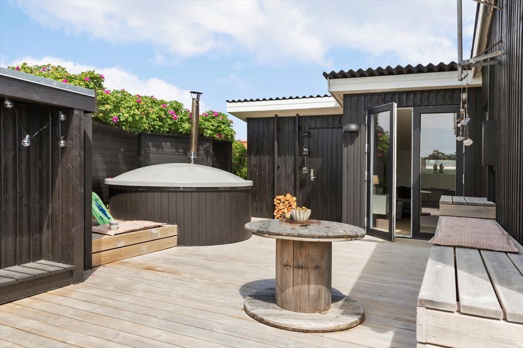 Wenn die Sonne über Vorupør scheint, ist es schwer, der Versuchung zu widerstehen, das Leben an der frischen Luft zu genießen. Vom Wohnzimmer aus kannst du direkt auf die Terrasse treten, wo du den Tisch für das Mittagessen decken oder dich in einer stillen Minute den zwitschernden Vögeln hingeben kannst. Nach einem Tag am Strand ist es ein Vergnügen, den Sand unter der Außendusche abzuspülen, bevor du in das dampfende Wasser des Badefasses eintauchst. Hier kannst du die Eindrücke des Tages auf dich wirken lassen, während du in den klaren Sternenhimmel schaust oder dem Rauschen des Meeres in der Ferne lauschst. Draußen findest du zudem viel Platz für Spiel und Entspannung, sodass die ganze Familie genau den Urlaub verbringen kann, den sie sich erträumt.
