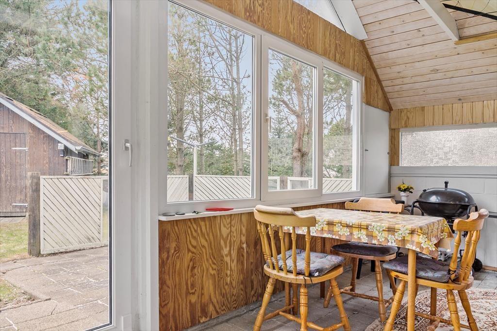 Draußen bietet ein schöner, gepflegter Garten einen stillen und friedlichen Rückzugsort, an dem Sie Ihre Gedanken schweifen lassen und das schöne Wetter genießen können. Das Gelände ist von einem kleinen, abgeschlossenen Garten umgeben, der ein Gefühl von Privatsphäre und Sicherheit vermittelt, sodass Ihre Kinder unbeschwert spielen oder Sie sich mit einem guten Buch unter freiem Himmel entspannen können. Stellen Sie sich vor, Sie beginnen den Tag mit einer Tasse Kaffee auf der Terrasse, wo Sie die frische Luft spüren und das sanfte Rauschen der Natur hören. Hier gibt es reichlich Gelegenheit für aktive Betätigung und Entspannung – vielleicht bei einem gemütlichen Spaziergang durch die umliegenden Grünanlagen, die jeweils den besonderen Thy-Charme versprühen. Der Garten und die Terrasse werden zu einer natürlichen Erweiterung der warmen und einladenden Atmosphäre des Ferienhauses, sodass Sie das Leben im Freien in vollen Zügen genießen können.