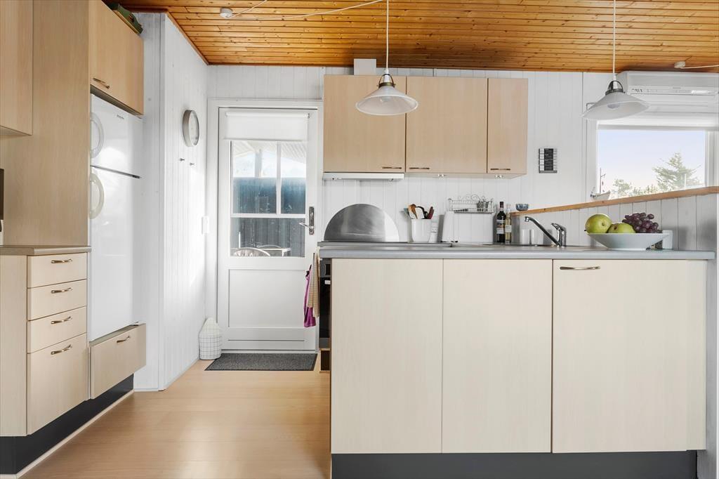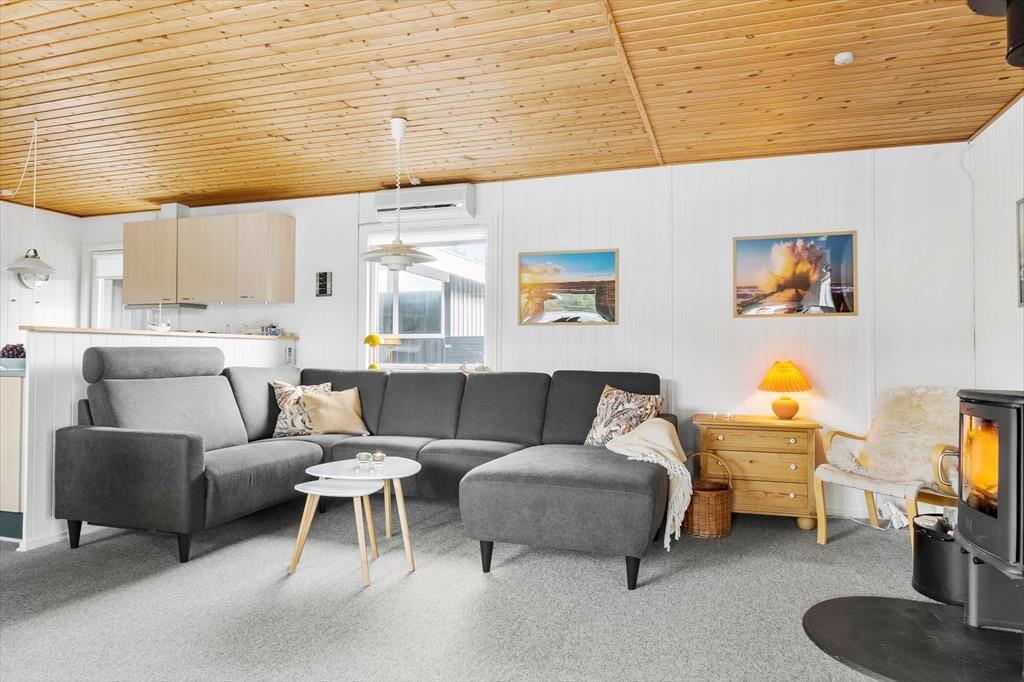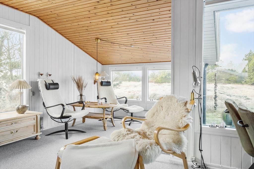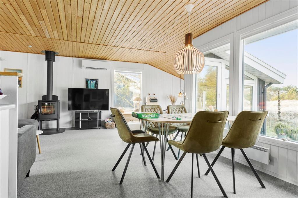 Betrete dieses Ferienhaus, in dem eine stimmungsvolle Oase geschaffen wurde, die sowohl Platz für Entspannung als auch für geselliges Beisammensein bietet. Die helle und geschmackvolle Einrichtung strömt Ruhe und Gemütlichkeit aus, und der geschickt platzierte Holzofen wird an kühleren Abenden schnell zum natürlichen Mittelpunkt, an dem das Spiel der Flammen und die sanfte Wärme zu behaglichen Momenten mit deinen Liebsten einladen. Jede Ecke des Hauses ist mit Liebe zum Detail gestaltet, und die sorgfältig ausgewählten Möbel sowie die harmonische Farbwahl schaffen eine Atmosphäre, in der du dich sofort wie zu Hause fühlst. Der offene Raum und die dezenten, hellen Nuancen betonen den Charakter des Ferienhauses und unterstreichen die einzigartige Kombination aus modernem Komfort und traditionellem Charme, die diesen Ort auszeichnet. Hier wurde an alles gedacht, sodass du dich darauf konzentrieren kannst, die kleinen, behaglichen Augenblicke zu genießen, die dein Urlaub in Vorupør so besonders machen.