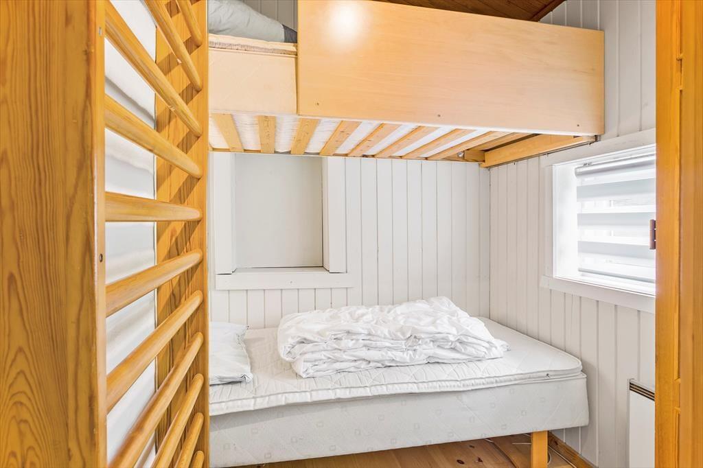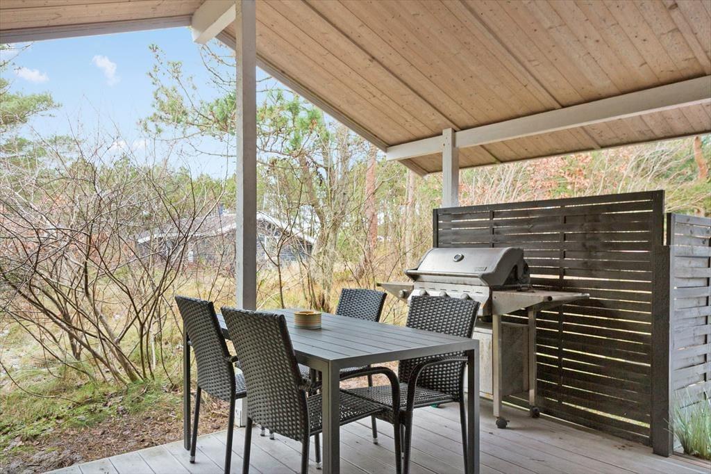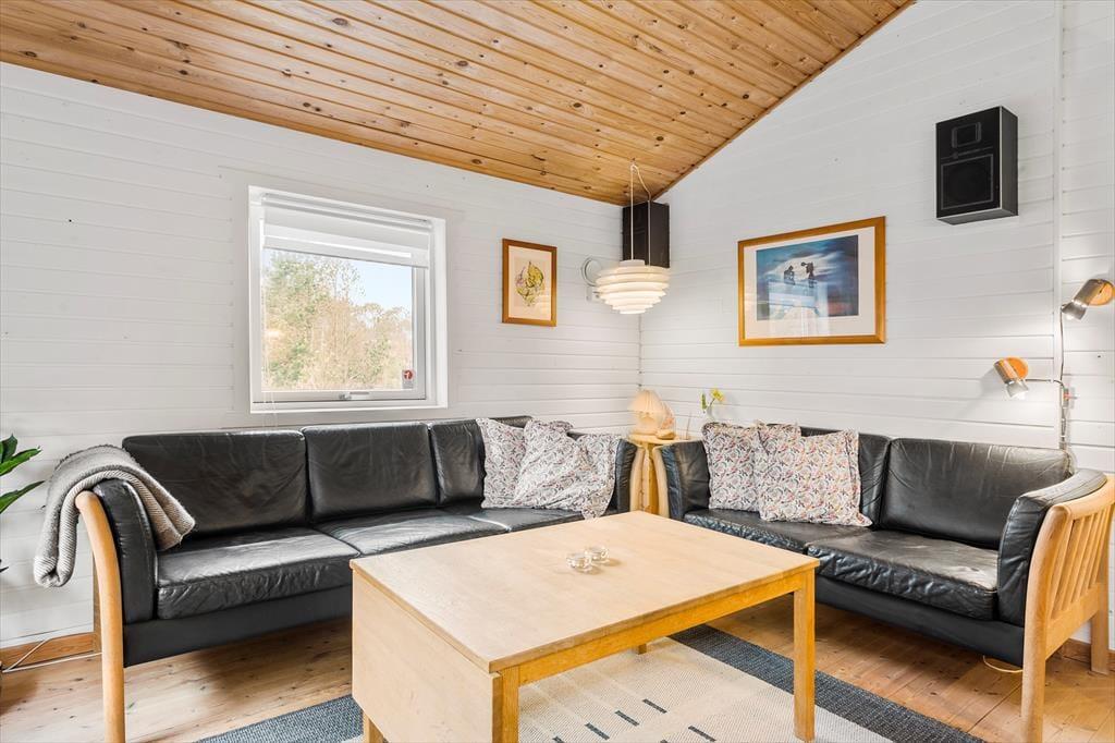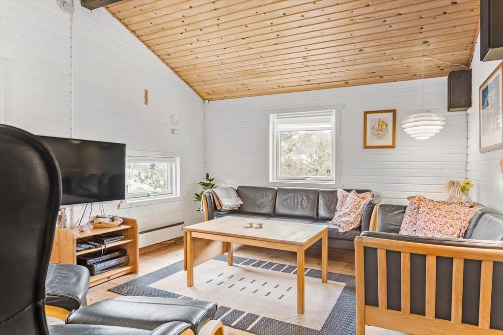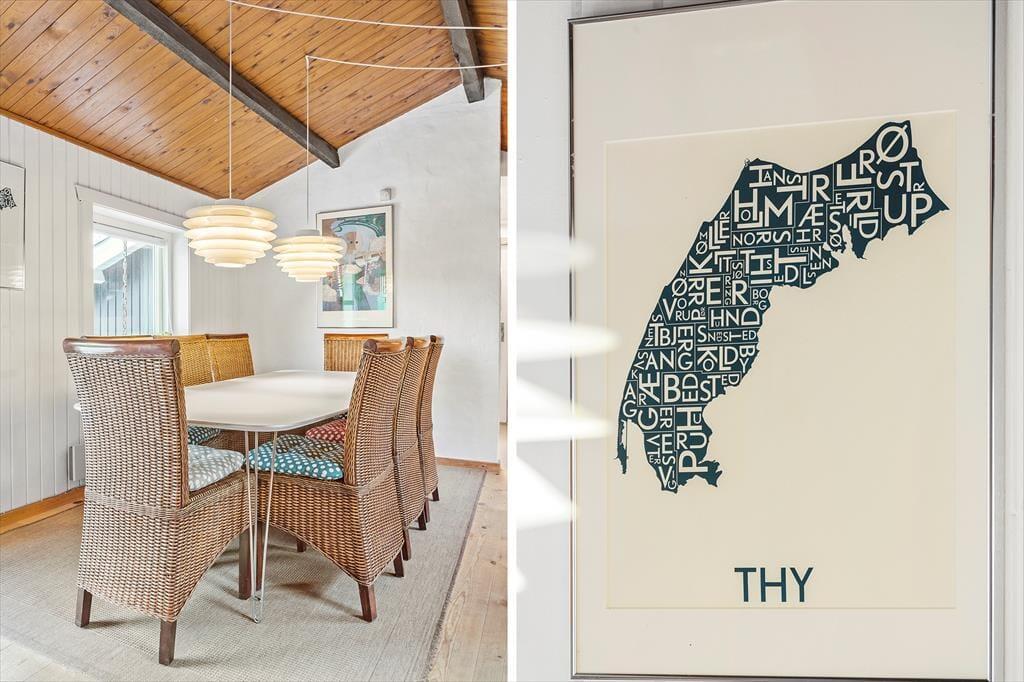 Treten Sie ein in das Ferienhaus, wo Sie sofort von einer warmen und einladenden Atmosphäre empfangen werden. Der lichtdurchflutete Raum und der geschickt platzierte Kaminofen schaffen einen behaglichen Rahmen, in dem Sie die Wärme des Feuers fast spüren und das leise Knistern hören können, das Erinnerungen an gemütliche Abende in geselliger Runde weckt. Die gut durchdachte Einrichtung verbindet modernen Komfort mit rustikalem Charme, und der offene Grundriss bietet Raum für Entspannung und gesellige Momente. Jeder einzelne Aspekt – von den weichen Textilien bis zur behaglichen Dekoration – trägt dazu bei, ein Gefühl von heimischer Geborgenheit und Wohlbefinden zu erzeugen, und Sie werden sofort spüren, dass dieses Ferienhaus in Vorupør eine Oase ist, in der Sie Ihre Gedanken schweifen lassen und den Urlaub in vollen Zügen genießen können.