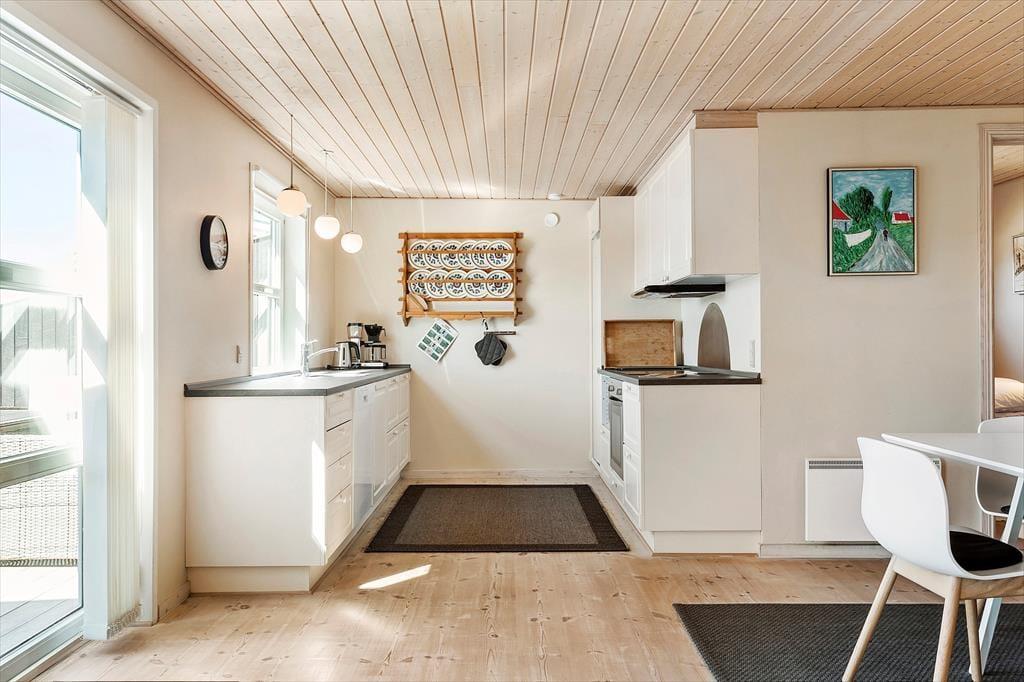 Die Lage in Vorupør, mitten in einer wilden und wunderschönen Natur, bietet Ihnen reichlich Gelegenheit, all das zu erkunden, wofür diese Gegend bekannt ist. Die Nordsee ist fußläufig erreichbar, und hier können Sie den Sand zwischen Ihren Zehen spüren, während Sie sich langsam vom Rauschen des Meeres und der frischen Seeluft mitreißen lassen. Vorupør ist Teil der Cold-Hawaii-Küstenstrecke, die für ihre fantastischen Surfmöglichkeiten und ihre authentische Küstenkultur berühmt ist – ein idealer Ort sowohl für Wassersportler als auch für Naturliebhaber. Wenn Sie es eher gemütlich mögen, lassen Sie sich von den atemberaubenden Dünenlandschaften des Nationalparks Thy und den großen Kiefernwäldern inspirieren, in denen die Tierwelt gedeiht und Ihnen einen einzigartigen Einblick in die Natur Nordwestjütlands bietet. Die örtlichen Geschäfte und Restaurants sind von maritimer Geschichte und Tradition geprägt, sodass Sie frisch gefangenen Fisch kaufen oder ein Eis am Hafen genießen können, während Sie den Fischerbooten zusehen, wie sie in den Wellen tanzen. Kurz gesagt: Mit der Nordsøvej 34 als Ausgangspunkt können Sie sich entweder den tosenden Wellen stellen oder die stillen Dünengebiete erkunden – ganz gleich, was Sie bevorzugen, hier erwartet Sie ein Urlaubserlebnis, das garantiert das Herz erwärmt und bleibende Erinnerungen schafft.