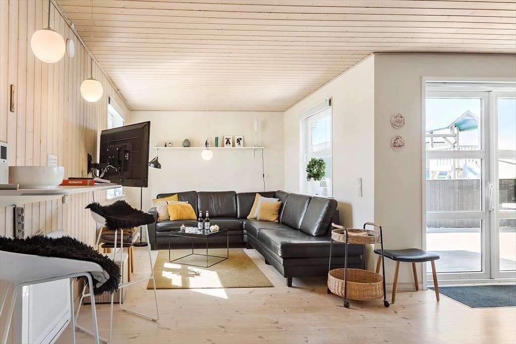Das Ferienhaus in der Nordsøvej 34 verfügt über mehrere schöne Terrassenbereiche, in denen Sie sich zurücklehnen, die Urlaubsatmosphäre in sich aufnehmen und Ihre Gedanken schweifen lassen können, während im Hintergrund die Vögel zwitschern. An warmen Tagen ist es einfach, die Mahlzeiten ins Freie zu verlegen, und ganz gleich, ob Sie es sich am Gartentisch oder in einem Loungesessel unter dem Sonnenschirm gemütlich machen, spüren Sie die angenehme Urlaubswärme, die Ihren Körper durchströmt. Wenn die Sonne hervorlugt, ist es herrlich, die Möglichkeit zu haben, den besten Platz im Windschatten oder direkt in der Sonne zu finden – ganz nach Laune. Die Terrassen bieten außerdem Platz für Spiel und Spaß – vielleicht holen Sie das eine oder andere Spiel hervor, sodass sowohl Groß als auch Klein am entspannten Ferienprogramm teilnehmen können. Und wenn der Abend kühler wird, ist es nicht weit bis zum gemütlichen Schein des Kaminofens, der zu einer letzten behaglichen Runde einlädt, bevor der Tag zu Ende geht. Draußen finden Sie also alles, was Sie sich von einem echten klassischen Ferienhaus erträumen – nämlich Freiheit, frische Luft und ein Gefühl ungestörter Ruhe.