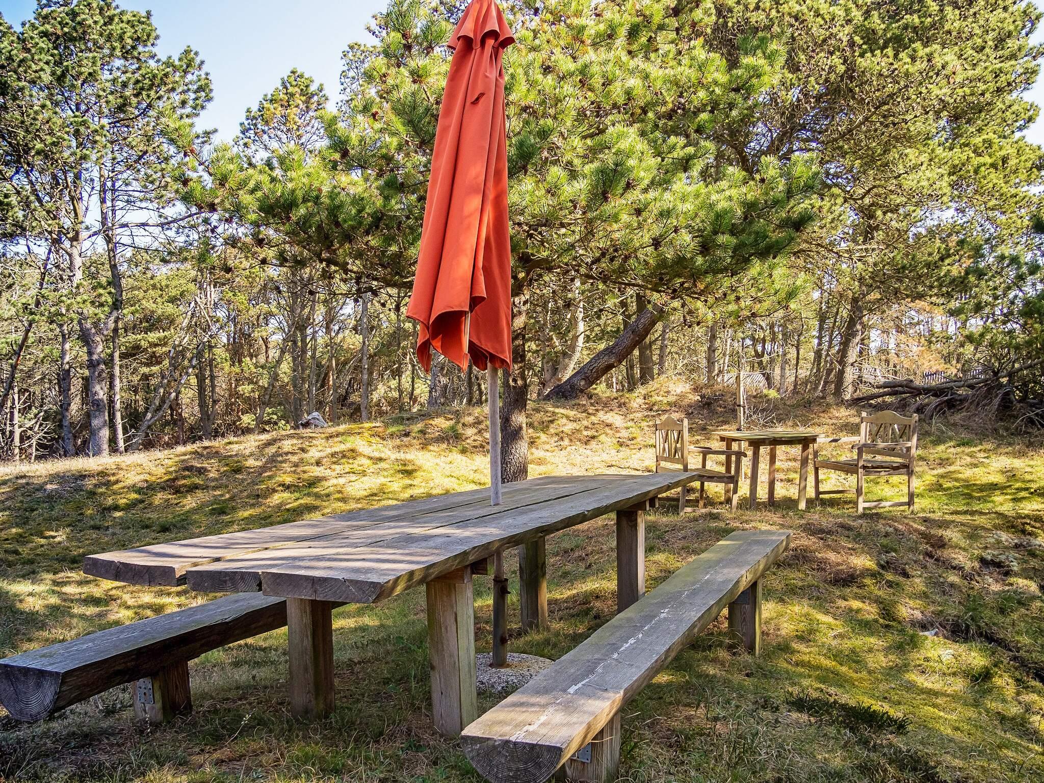 Die 13 m² große, verglaste Veranda bietet einen geschützten Platz für kühlere Abende und führt direkt in den Garten, wo ein Grill zur Verfügung steht. Umgeben von Bäumen und natürlicher Bepflanzung bietet das Anwesen ein authentisches Naturerlebnis und gleichzeitig Schutz vor dem Wind. Das Ferienhaus liegt ruhig an einer Nebenstraße in einer attraktiven und landschaftlich reizvollen Gegend in der Nähe von Sdr Vorupor, bekannt für seinen einzigartigen Küstencharme.