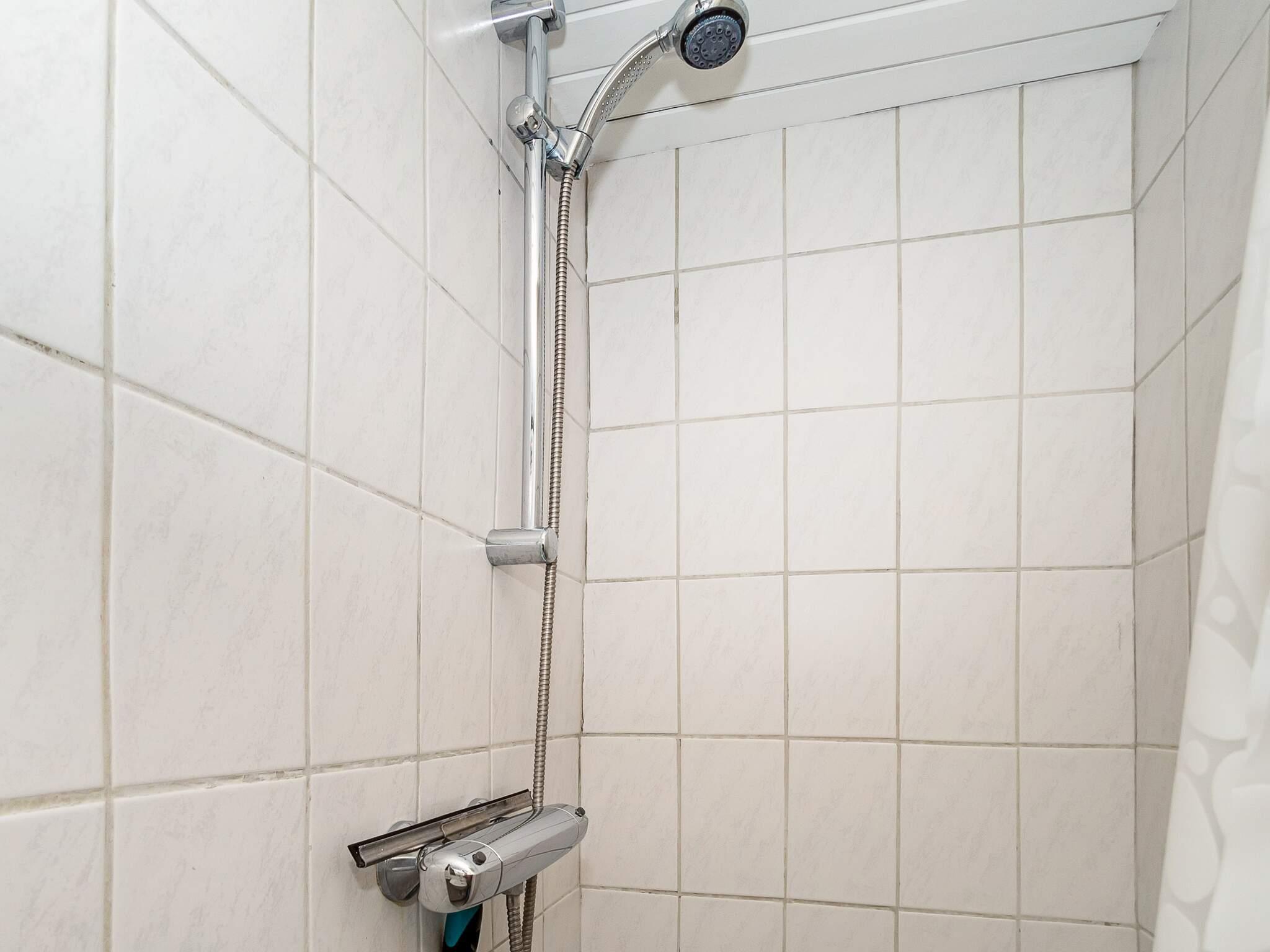 Im Inneren bildet der offene Küchen- und Wohnbereich das Herzstück des Hauses und verfügt über einen Essbereich und eine gemütliche Sitzecke. Die Küche ist mit einem Cerankochfeld, einer Dunstabzugshaube und einem Kühlschrank ausgestattet. Weitere Geräte wie Geschirrspüler, Waschmaschine und Gefrierschrank befinden sich im Hauswirtschaftsraum, der von der verglasten Veranda aus zugänglich ist. Die beiden Schlafzimmer sind hell und freundlich eingerichtet und verfügen über zwei Einzelbetten (80 x 200 cm) in einem Zimmer und ein Etagenbett mit zwei Schlafplätzen im anderen.