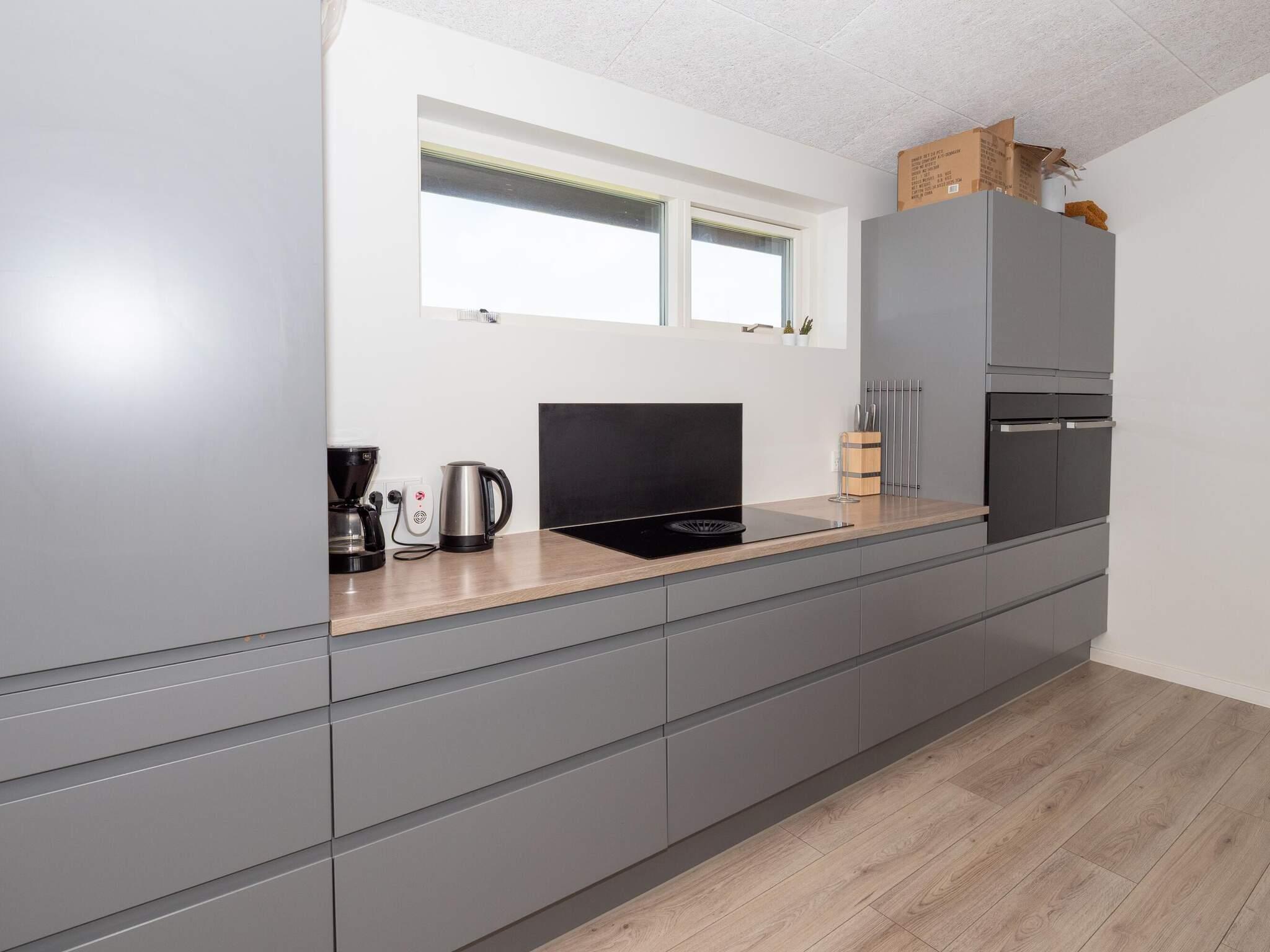 Eine energiesparende Luft-Wasser-Wärmepumpe liefert Fußbodenheizung für alle Räume des Hauses. Die große Wohnküche bildet den Mittelpunkt für das Familienleben. Die Küche ist gut ausgestattet mit u.a. einem Backofen auf Höhe, einer Mikrowelle und einem Geschirrspüler.