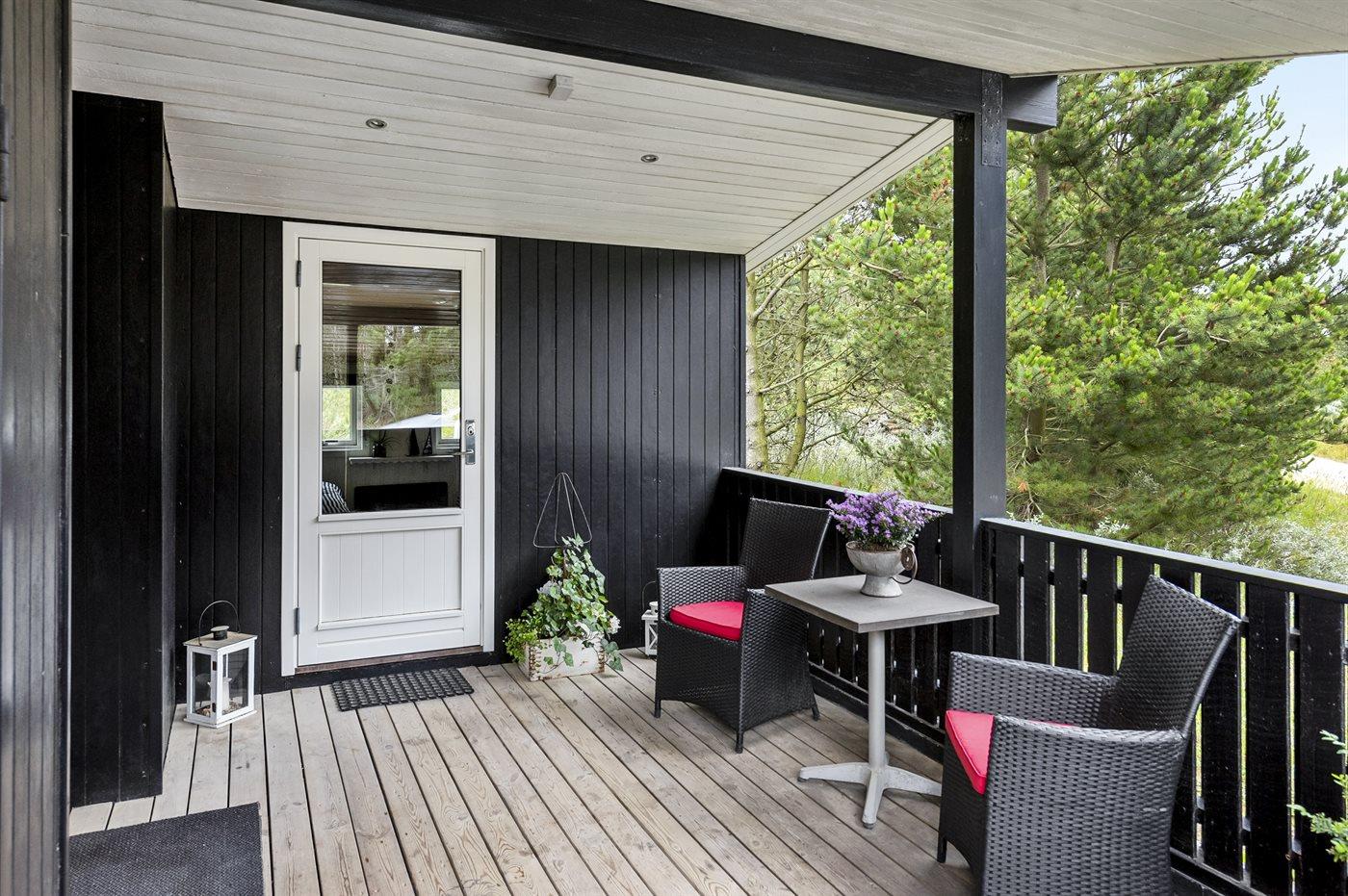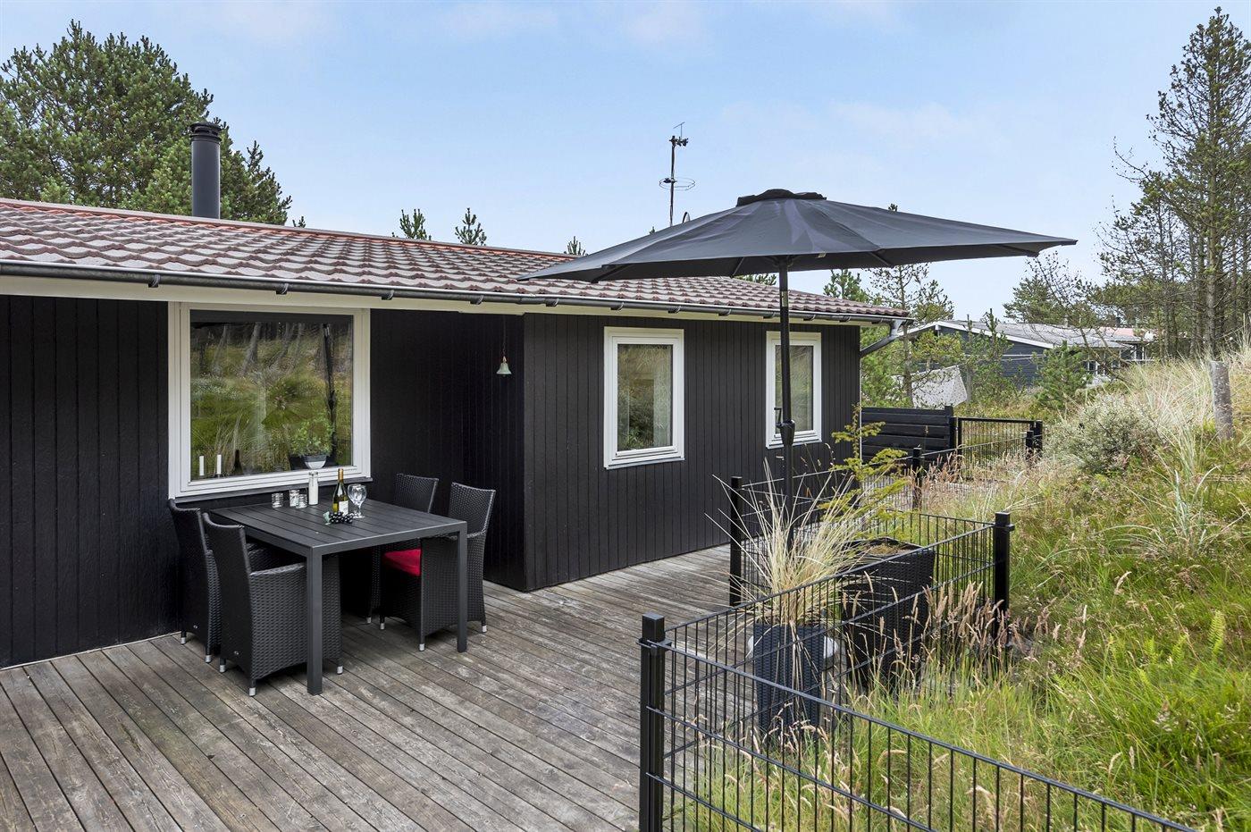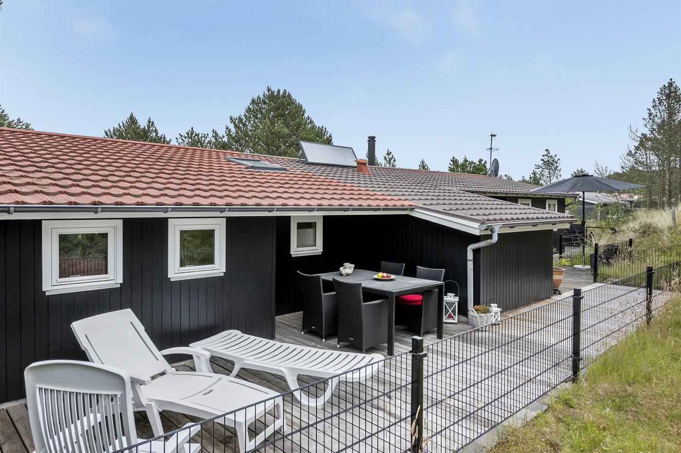 Die Ferienunterkunft liegt auf einem 1400 m² großen Dünengrundstück. Die Entfernung zum Meer beträgt 1700 m. Die nächste Einkaufsmöglichkeit liegt 1500 m entfernt. Es steht ein 61 m² Terrassenareal zur Verfügung. Außerdem gibt es 13 m² überdachte Terrasse. Davon insgesamt 74 m² geschlossene Terrasse. Geräteraum. Sandkasten. Es stehen 2 Grills zur Verfügung. (1 Kohlegrill und 1 Gasgrill). Parkplatz auf dem Grundstück.