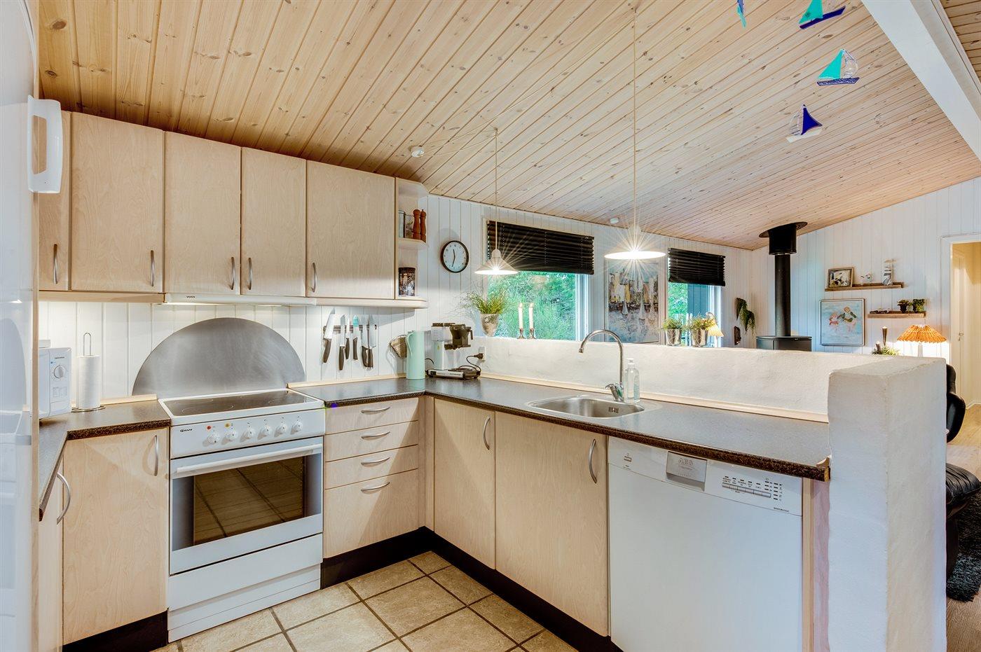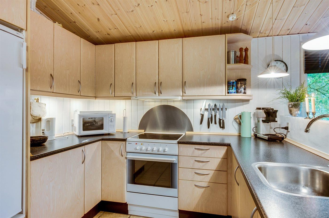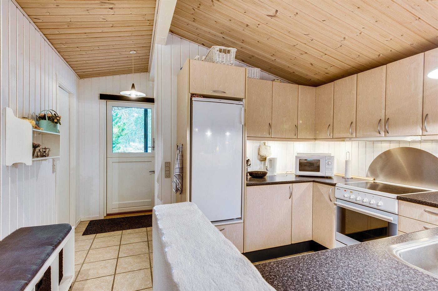 Die Küche ist mit Kühlschrank ausgestattet. Außerdem gibt es 4 Keramik-Kochfelder, Backofen, Mikrowelle sowie Geschirrspüler.