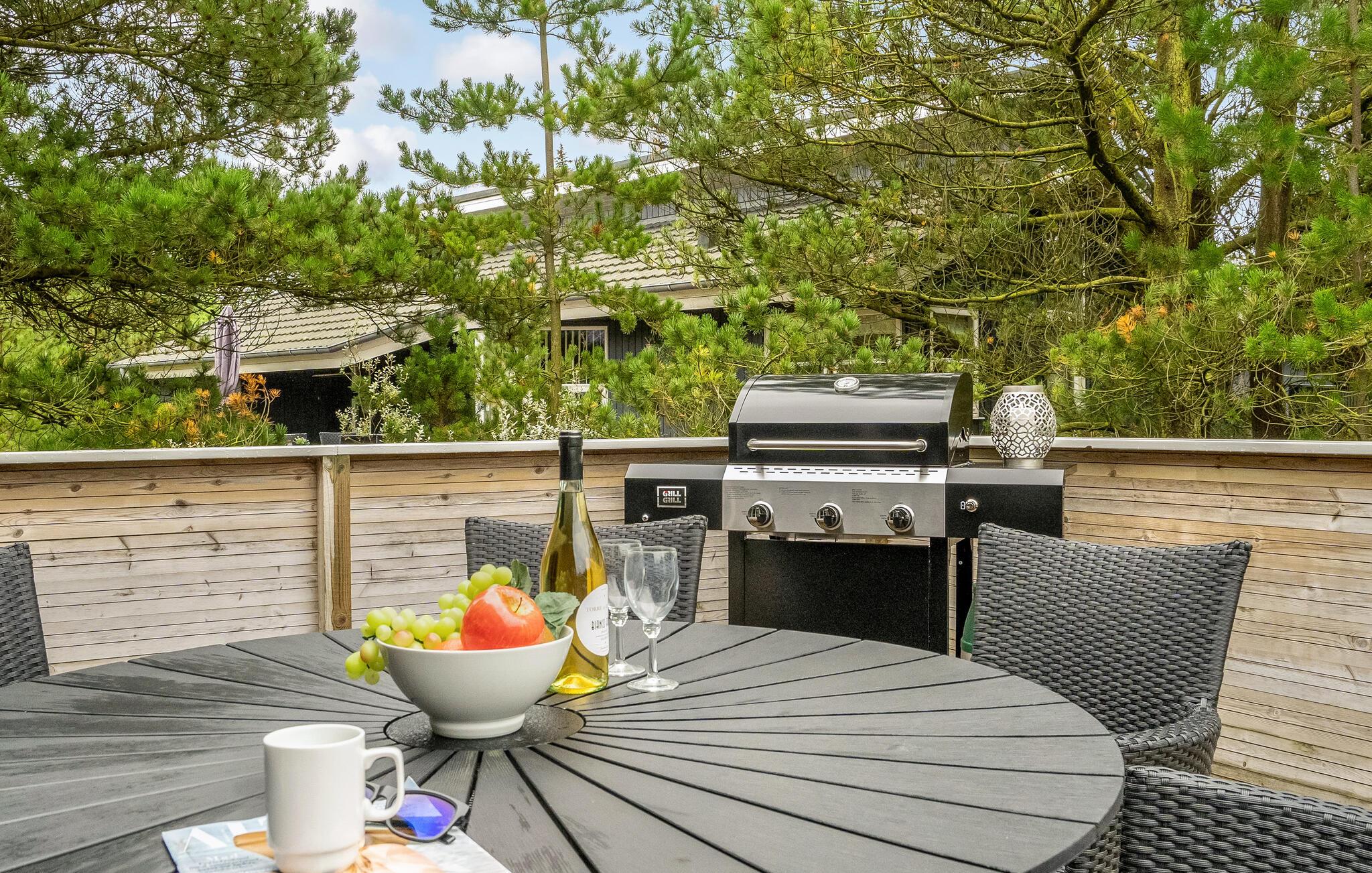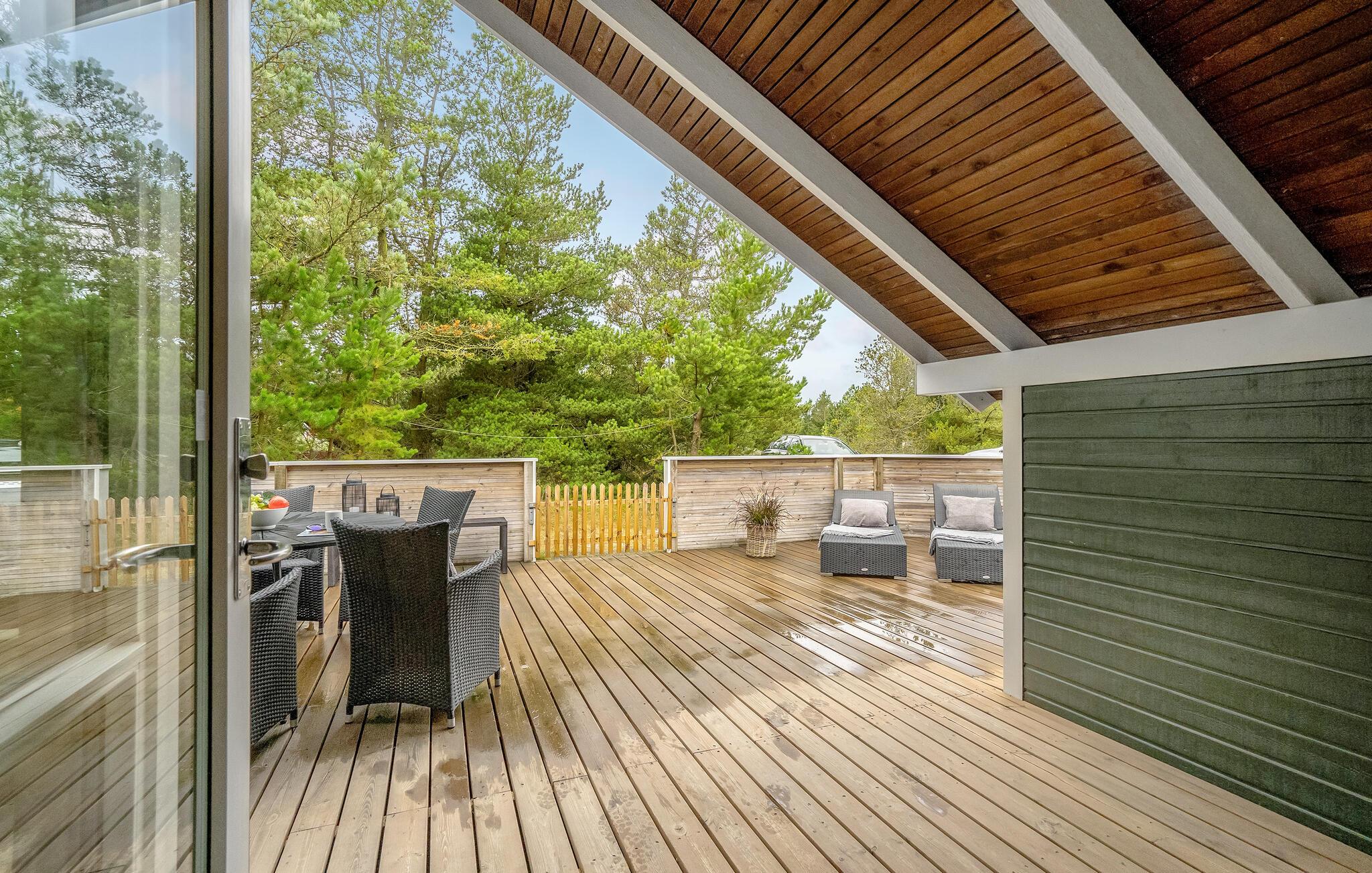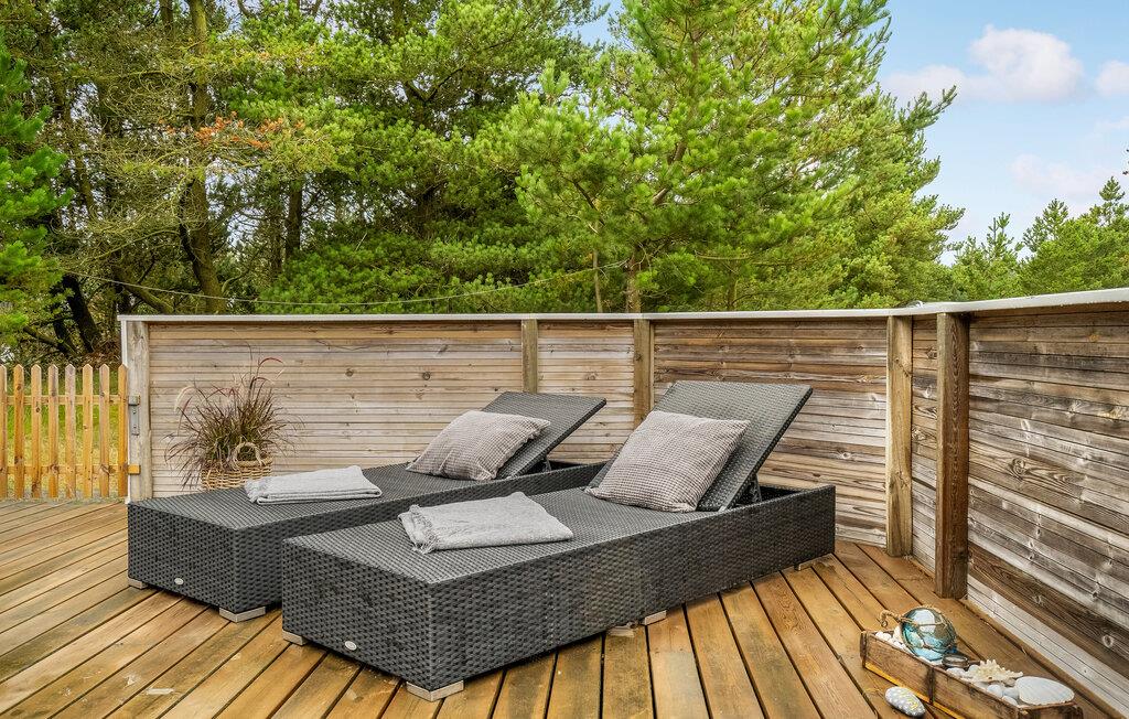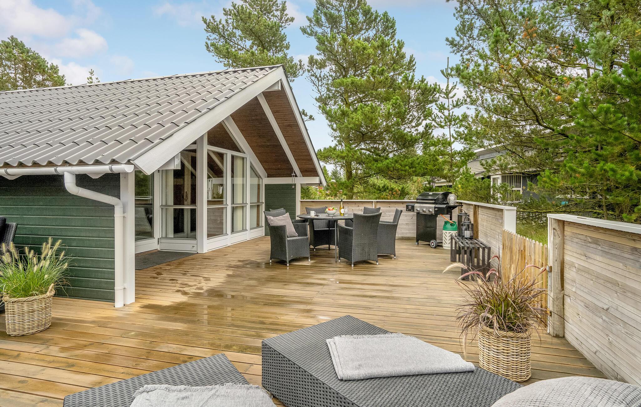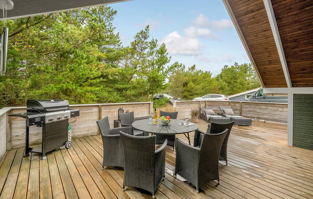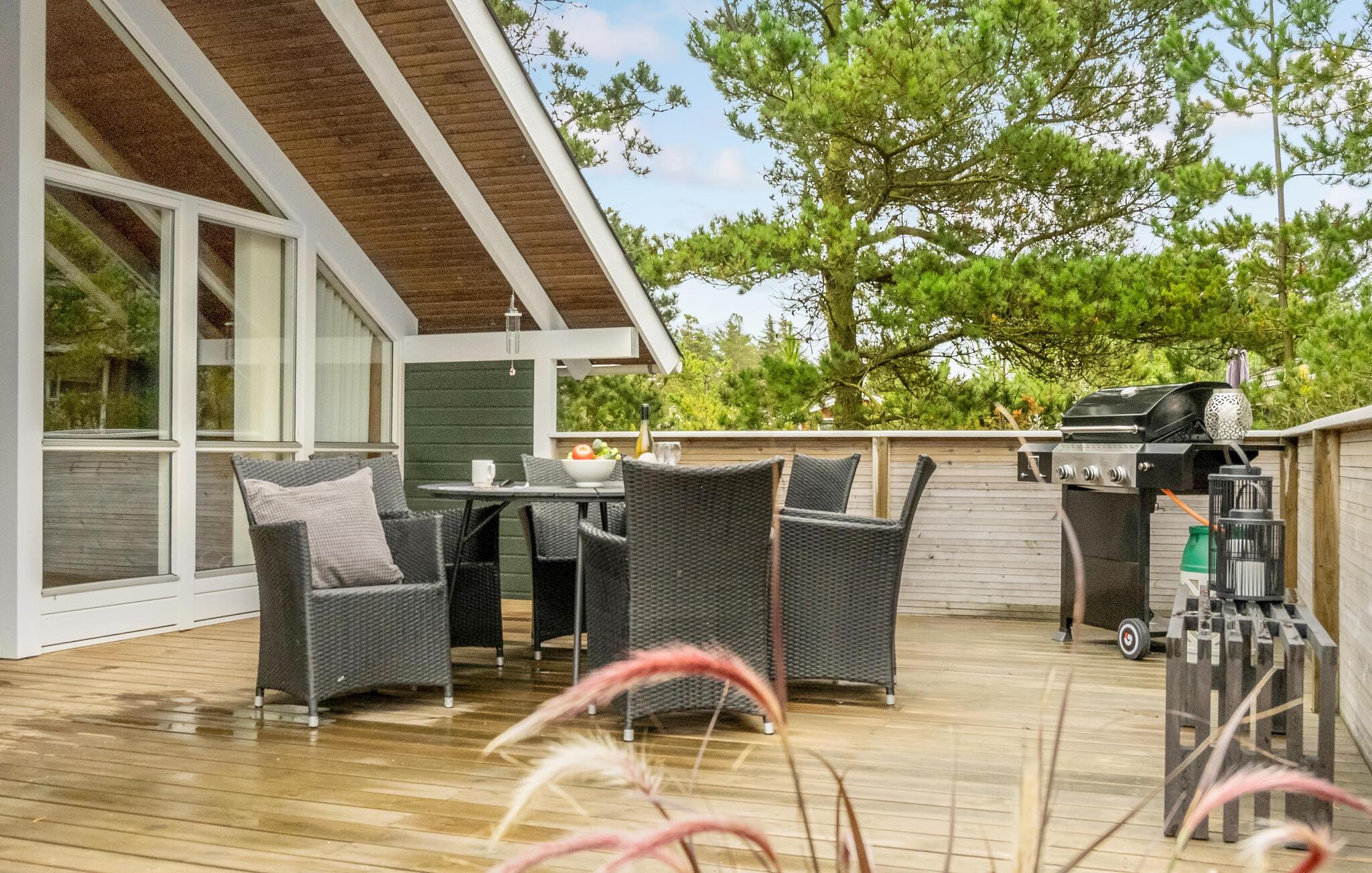 Gemütliches Ferienhaus in Vorupør nahe dem Meer mit Kaminofen, Terrasse und moderner Ausstattung für entspannte Urlaubstage.