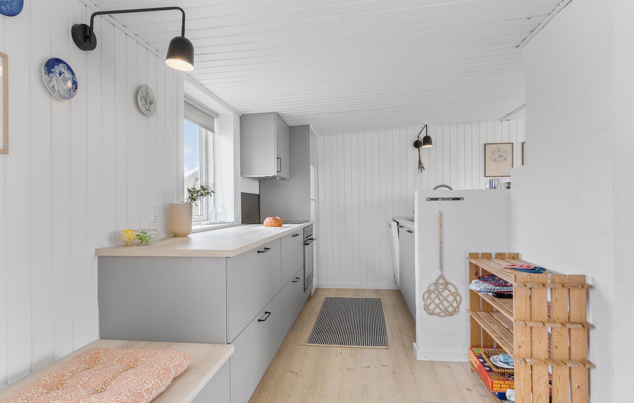 Schon bei Ihrer Ankunft am Vorupør Strand werden Sie die helle, einladende Atmosphäre Ihres Ferienhauses spüren. Die geschmackvolle Einrichtung im Inneren bildet eine schöne Harmonie mit der dunklen Holzfassade des Hauses. In der offenen Küche können Sie ein köstliches Frühstück zubereiten, während der Esstisch der ideale Ort ist, um bei den Mahlzeiten gemeinsame Pläne für den Tag zu schmieden. Auf der Terrasse lässt sich ebenso wunderbar essen oder bei einer Tasse Tee die Ruhe und die freie Urlaubszeit genießen. Der gemütliche Wohnbereich lädt mit einem bequemen Sofa und einem Kaminofen, der wohlige Wärme verbreitet, zu entspannten Stunden ein.