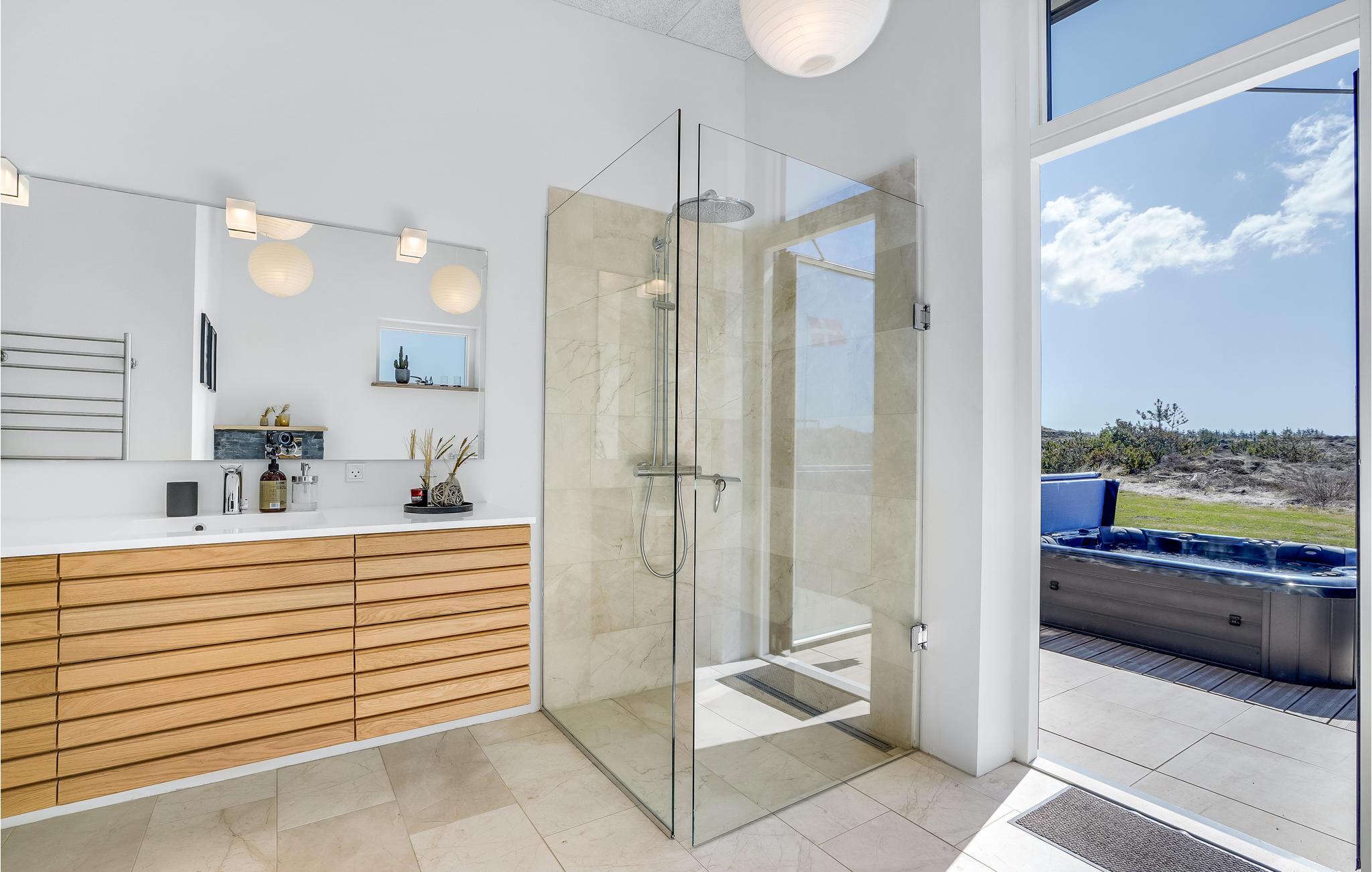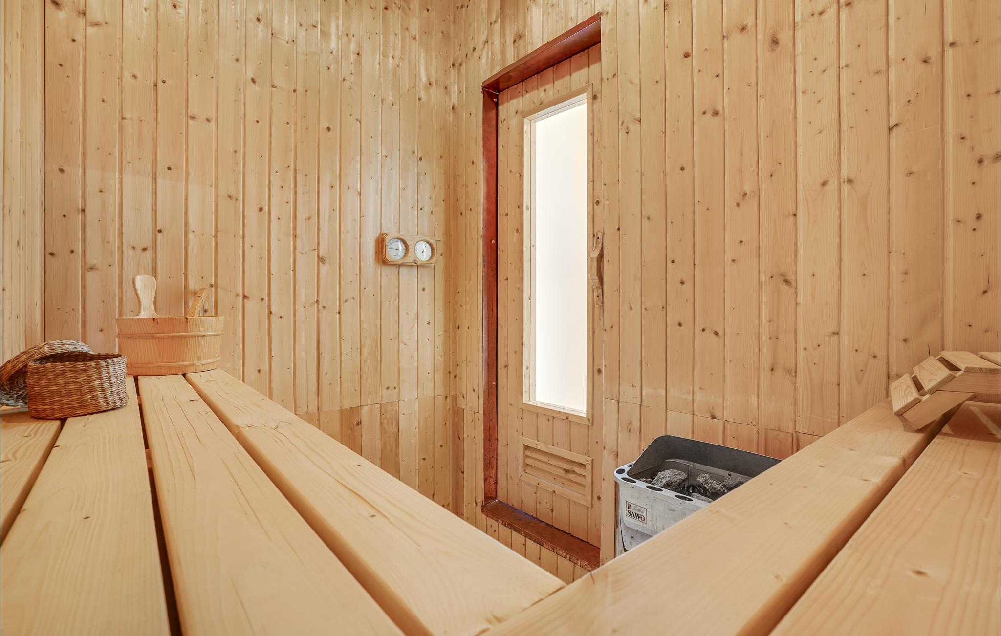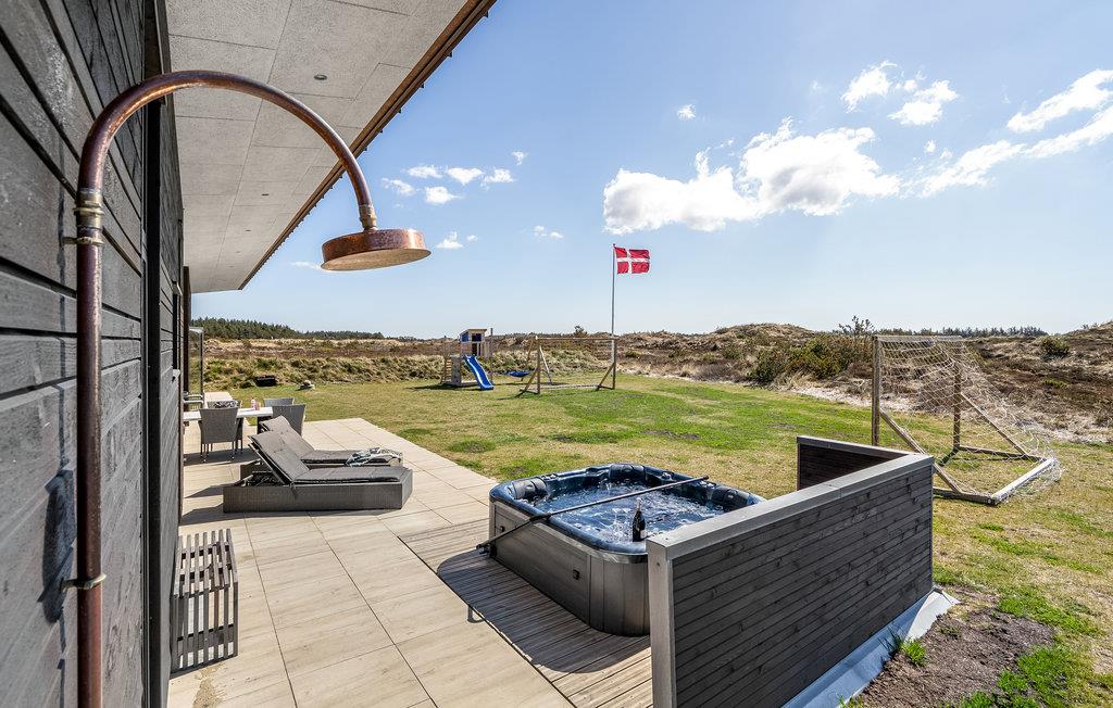 Kommen Sie mit Ihren Freunden, der ganzen Familie oder befreundeten Familien nach Vorupør, wo Sie dieses großartige Ferienhaus vorfinden. Hier wird es Ihnen an nichts fehlen. Die vollständige Innenausstattung sorgt für höchsten Komfort. Speisen Sie gemeinsam an der großen Tafel neben der Küche oder vergnügen Sie sich in den Freizeiträumen mit Tischtennis und Billard. Die Kinder können sich draußen im Garten an den Spielgeräten austoben, während sich die Erwachsenen entspannt auf der Terrasse sonnen. Nach erlebnisreichen Tagen entspannen Sie sich in der hauseigenen Sauna oder im Außen-Whirlpool und lassen den Tag gemütlich mit einem Glas Wein oder einem leckeren Bierchen ausklingen.