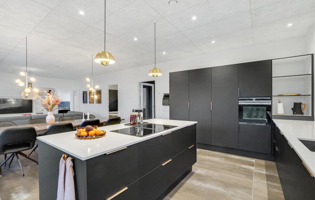 Hochwertige Ausstattung und geschmackvolles Design empfangen Sie in dieser wunderschönen Unterkunft. Das geräumige Ferienhaus bietet Ihrer Großfamilie oder zwei befreundeten Familien ausreichend platz sich zusammen entspannen oder zu spielen. Ein Aktivitätsraum lädt Jung und Alt zum Zocken ein. Tragen Sie Turniere im Airhockey, Billiard, Darts oder Tischtennis aus. Entspannen Sie können Sie im großen Wohnraum, der kochen, essen und relaxen vereint. Machen Sie es sich auf der großen Sofalandschaft bequem und lassen Sie sich von einer lustigen Serie unterhalten. An kühlen Tag oder Abenden können Sie den Kamin anfeuern und bei kuschliger Atmosphäre die Zeit zusammen genießen.