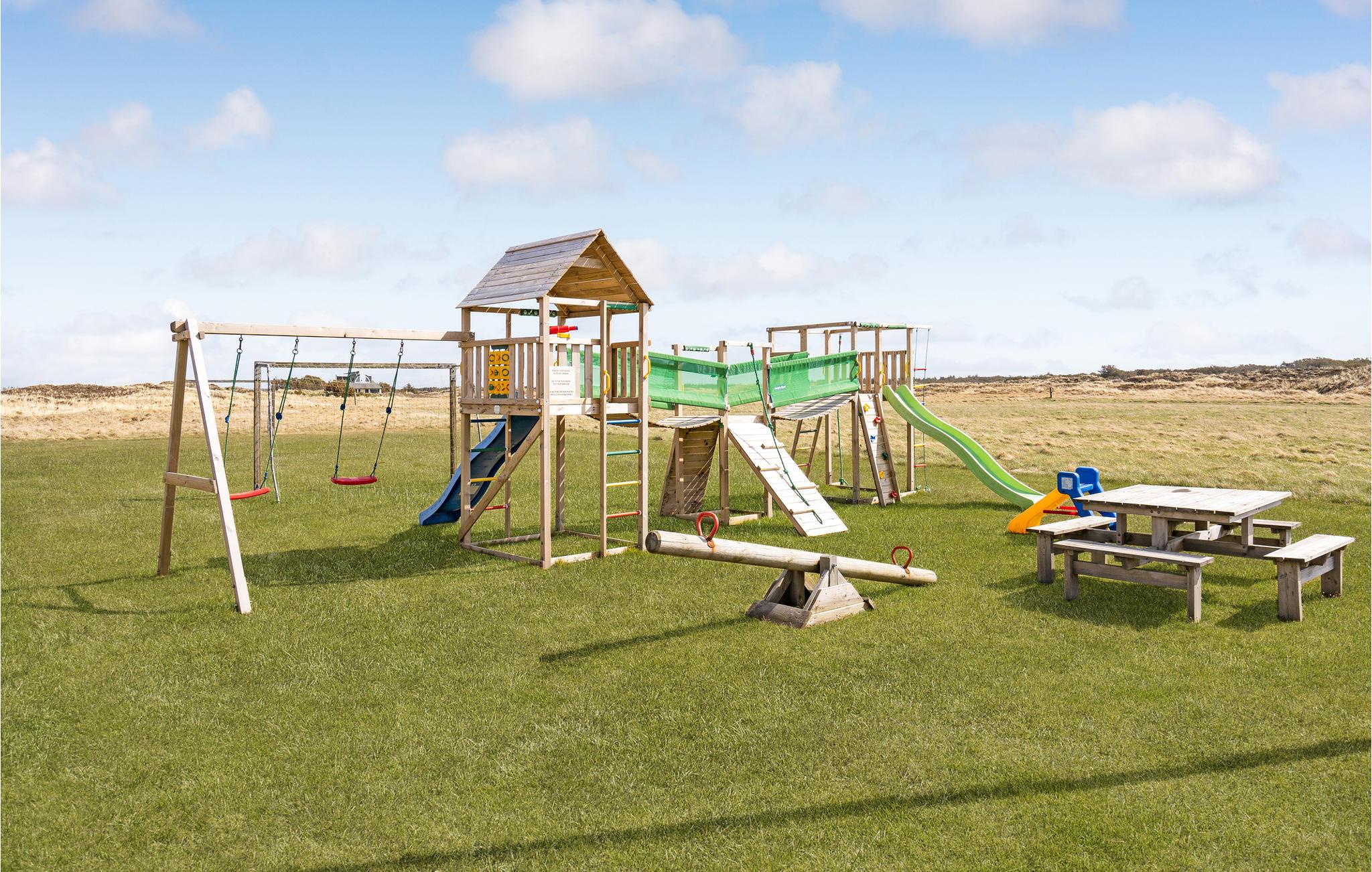 Schönes Ferienhaus etwas außerhalb des traditionellen Ferienhausgebietes gelegen und damit völlig ungestört. Hier kann eine ganze Familie es sich drinnen und draußen so richtig bequem machen. Die Ungestörtheit wird noch dadurch verstärkt, dass das Haus an ein geschütztes Gebiet angrenzt. Hier bieten sich viele Möglichkeiten für Aktivitäten, u.a. können die Kinder sich auf dem Spielplatz vergnügen und die Erwachsenen finden im separaten Aktivitätshaus eine Bar, einen Billardtisch u.a.
