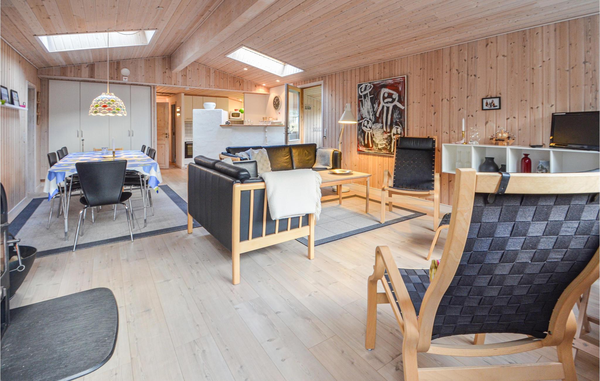 Klassisches Ferienhaus aus Holz auf großem Naturgrundstück in dem Küstenfischerort Vorupør Strand. Große, offene Küche mit guter Ausstattung an Küchengeräten - das Haus eignet sich damit gut für Selbstversorger und Menschen die gerne auch im Urlaub den Kochlöffel schwingen. Das Wohnzimmer und der Essbereich schließen sich direkt an die Küche an. Draußen finden Sie eine schöne Holzterrasse, die komplett umzäunt ist - Eltern mit Kindern müssen daher keine Sorge haben, dass sie die Kleinen aus den Augen verlieren. 3 Schlafzimmer mit je 2 Doppelbetten und einem Einzelbett bieten genug Platz für 4 Personen. Vorupør Strand hat tolle, breite Strände und auch für Geschichtsinteressierte ist etwas geboten - im Heimatmuseum von Vorupør können Sie etwas über die Geschichte und das Leben am Meer lernen.