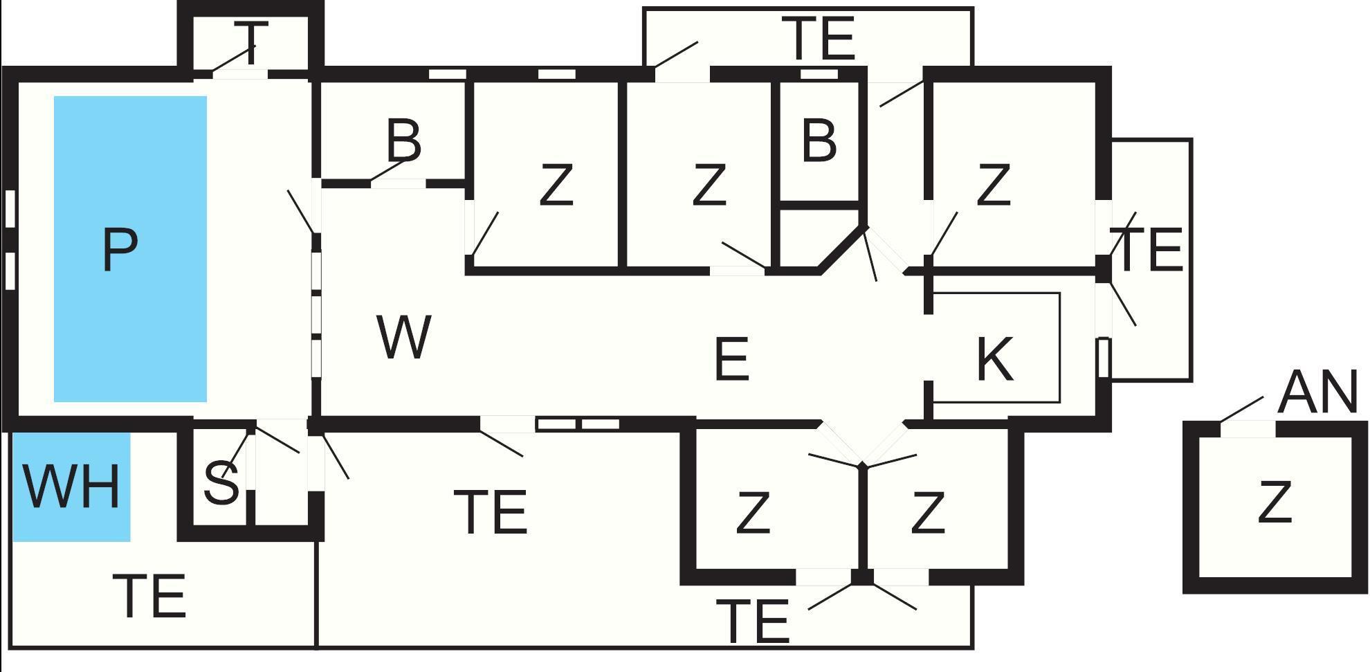Das Ferienhaus steht nur etwa 300 m von der herrlichen Nordseeküste bei Vrist entfernt. Es ist mit einem einladenden Poolbereich mit Swimmingpool (6,0 x 3,5 x 1,4 m), Whirlpool für max. 3 Personen und Sauna für max. 4-5 Personen ausgestattet. Zudem stehen im Haus zwei Bäder, beide mit angenehmer Fußbodenheizung zur Verfügung.