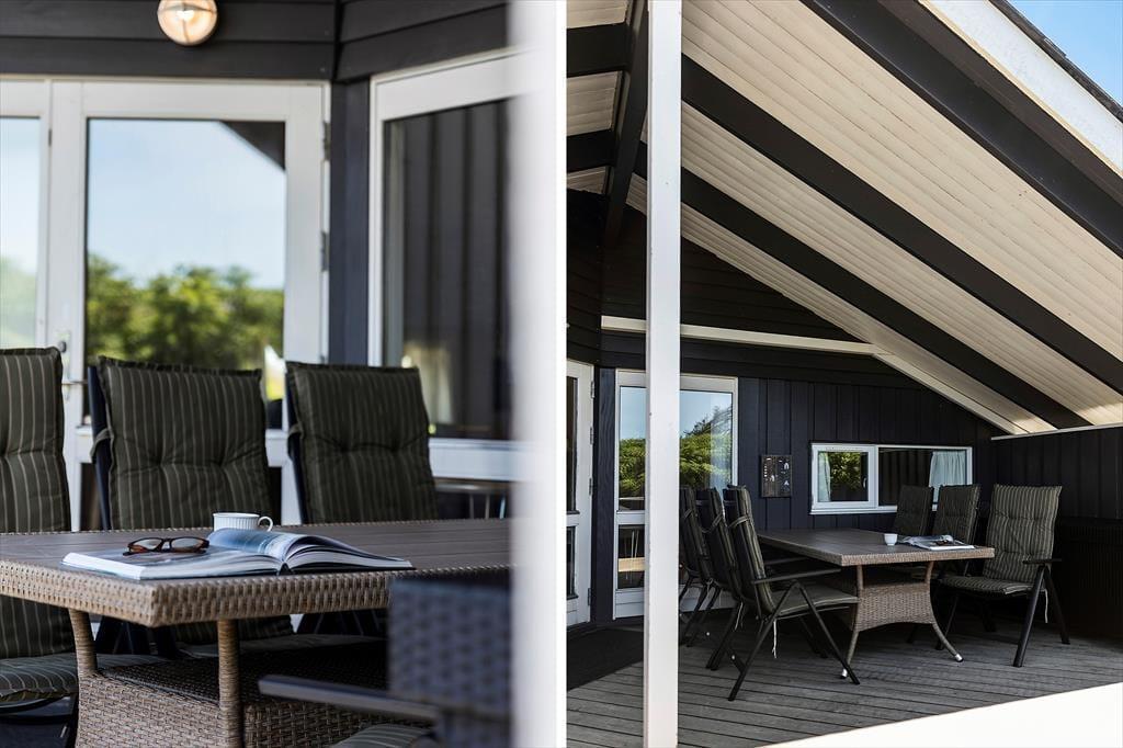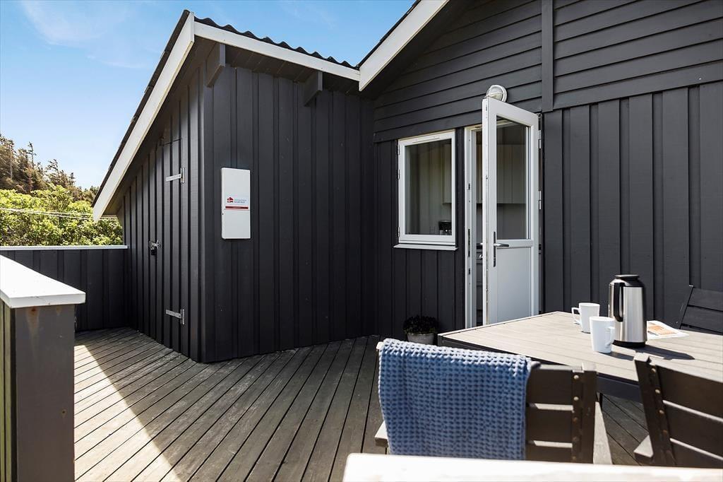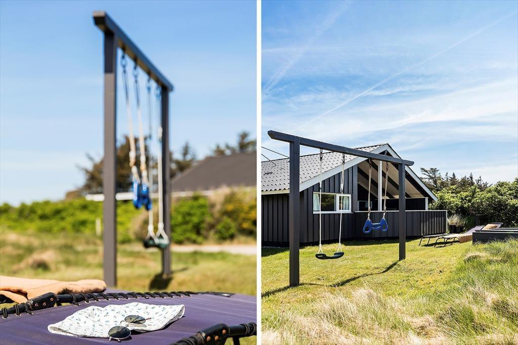 Auf der großzügigen Terrasse können Sie auf den Sonnenliegen die Sonne genießen oder sich rund um den Grill zu einem köstlichen Essen unter freiem Himmel versammeln. Das 800 m² große Grundstück bietet viel Platz zum Spielen und Entspannen und für die jüngsten Gäste gibt es sowohl eine Schaukel als auch einen Sandkasten, wo der Fantasie freien Lauf lassen kann. Hier können Sie den Gesang der Vögel hören und die frische Meeresluft spüren, während Sie Ihren Urlaub in aller Ruhe genießen.