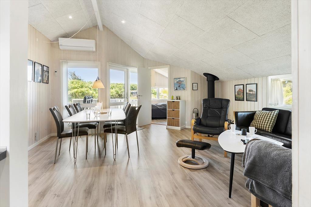 Beim Betreten erwartet Sie eine neue, stilvolle Küche aus dem Jahr 2020, die sich zu einem gemütlichen Wohnzimmer hin öffnet. Hier können Sie in bequemen Möbeln vor dem Holzofen versinken, während die Hitze und das Knistern der Flammen für eine angenehme Atmosphäre sorgen. Nach einem Tag am Strand können Sie sich in der Sauna des Hauses verwöhnen lassen. Die vier hellen Schlafzimmer bieten einen ruhigen Rahmen für einen erholsamen Schlaf, sodass Sie am nächsten Tag für neue Erlebnisse gerüstet sind.