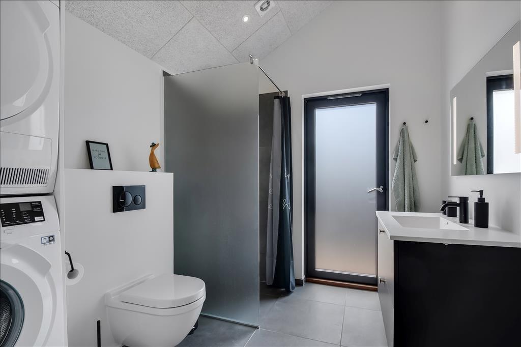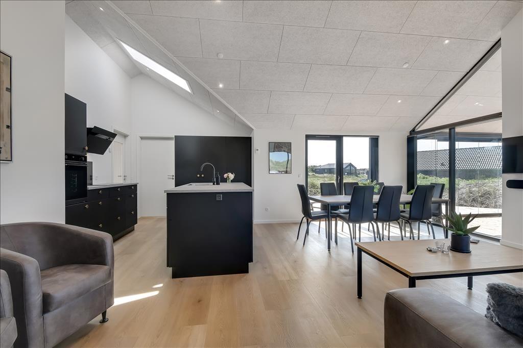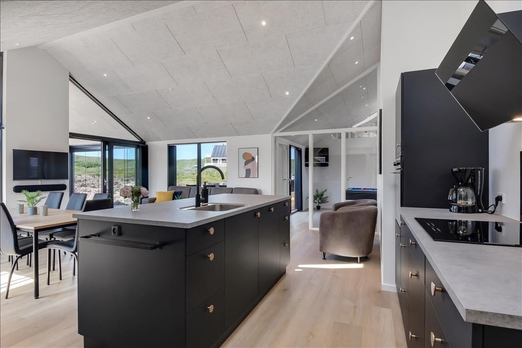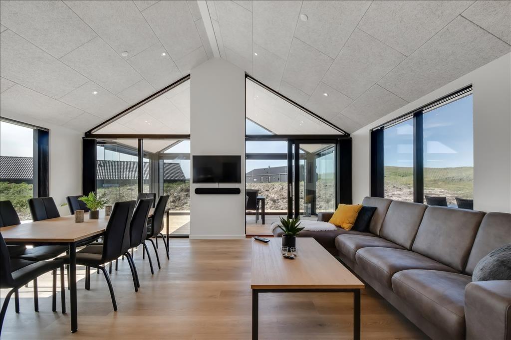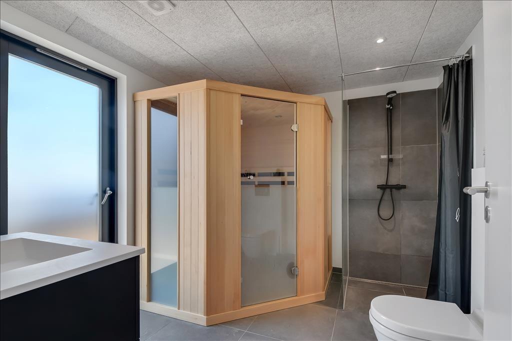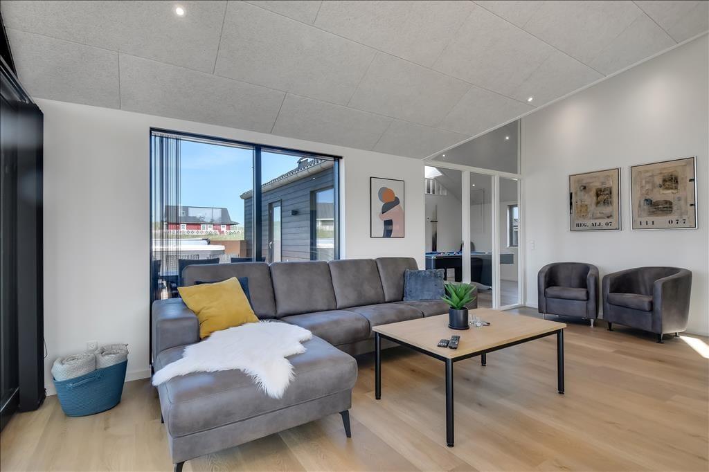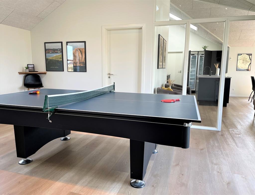 Schon beim Eintreten spürst du die helle und freundliche Atmosphäre des Hauses. Es bietet viel Platz, hohe Decken und jede Menge Möglichkeiten für gemeinsame Stunden und erholsame Momente. Küche, Essbereich und Wohnzimmer gehen offen ineinander über, sodass du beim Kochen, mit einem Glas Wein oder einem guten Buch im Sofa nie den Kontakt zu deinen Liebsten verlierst. Eine gemütliche Hems-Etage bietet zusätzlichen Raum – vielleicht als Spielecke für Kinder oder als ruhiger Rückzugsort mit Blick auf den Wohnbereich. Im Badezimmer befindet sich eine Innensauna mit direktem Zugang zur Terrasse – ideal, um Wellness mit frischer Luft zu kombinieren. Und wenn es etwas lebhafter zugehen darf, sorgt der Aktivitätsraum mit Tischtennis und Billardtisch für stundenlangen Spielspaß und freundschaftliche Wettkämpfe.