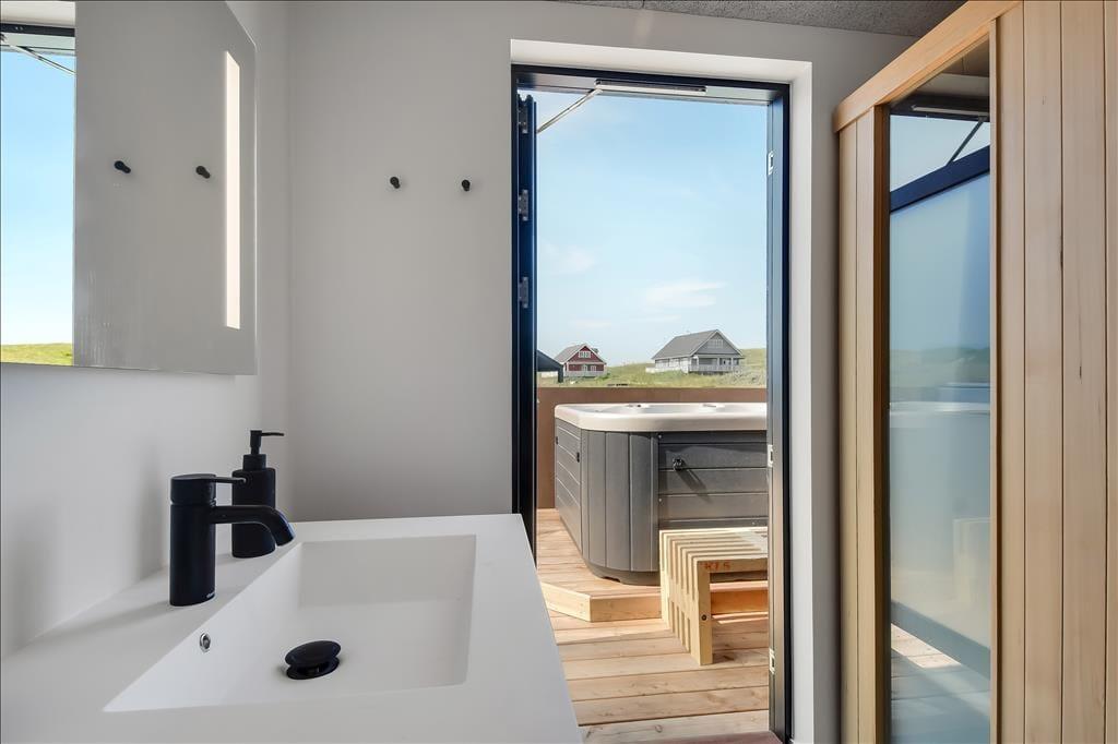 Ein Urlaub voller Entspannung und Unterhaltung erwartet dich in diesem modernen und einladenden Ferienhaus in der Hvilehjemsvej 24 in Vrist. Freu dich auf einen Außenwhirlpool, einen tollen Aktivitätsraum und eine große, teilweise überdachte Terrasse, die sowohl in der Sonne als auch im Schatten zum Verweilen einlädt. Die ruhige Lage in der Nähe der Nordsee und der schönen Landschaften der Umgebung macht das Urlaubserlebnis komplett – perfekt für Familien mit Kindern oder Paare, die sich etwas gönnen möchten.