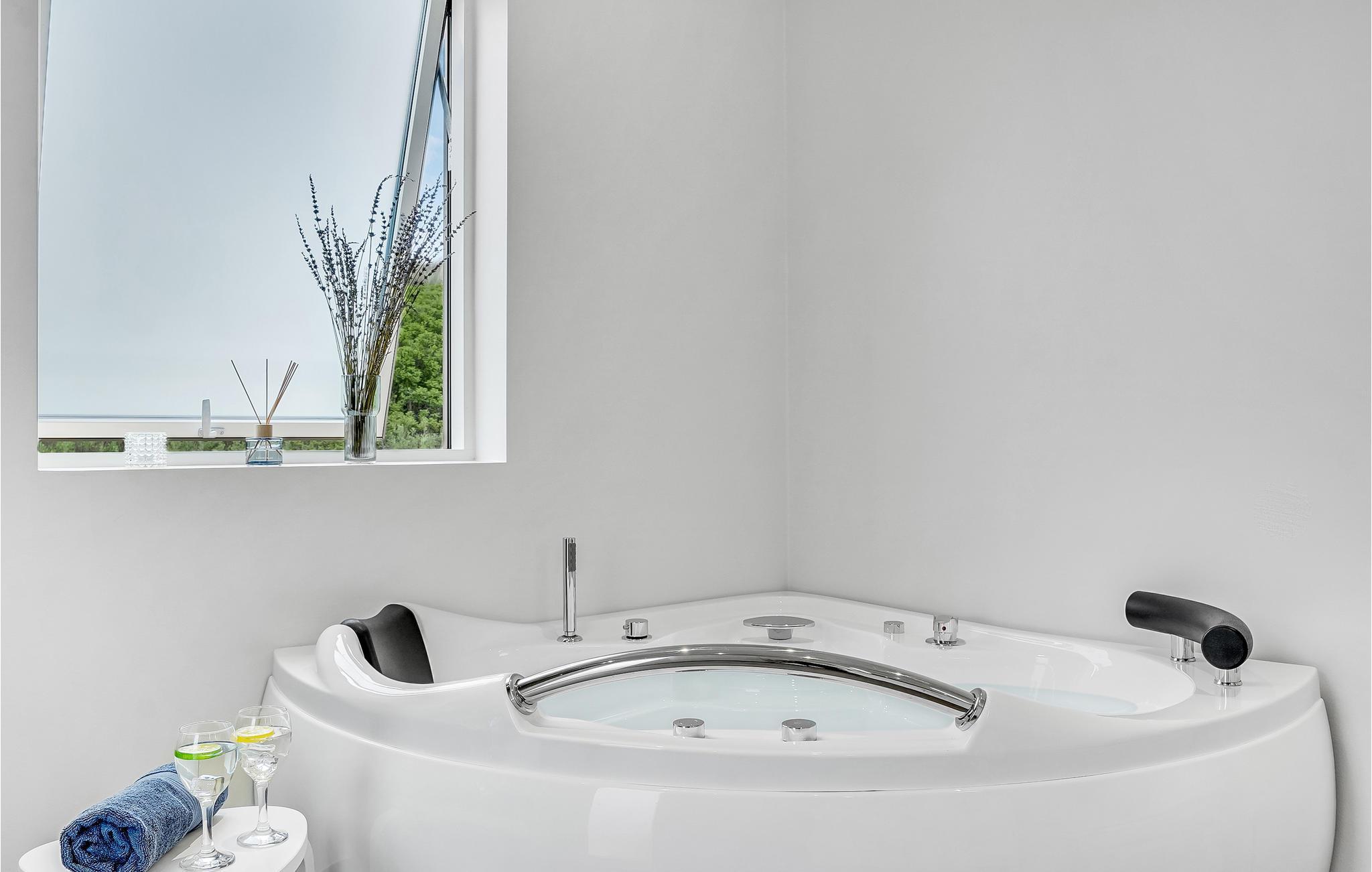 Modernes Aktivitätshaus in Vrist direkt an den weißen Sanddünen mit Sauna, Whirlpool und großem Wellnessbereich für entspannte Tage.