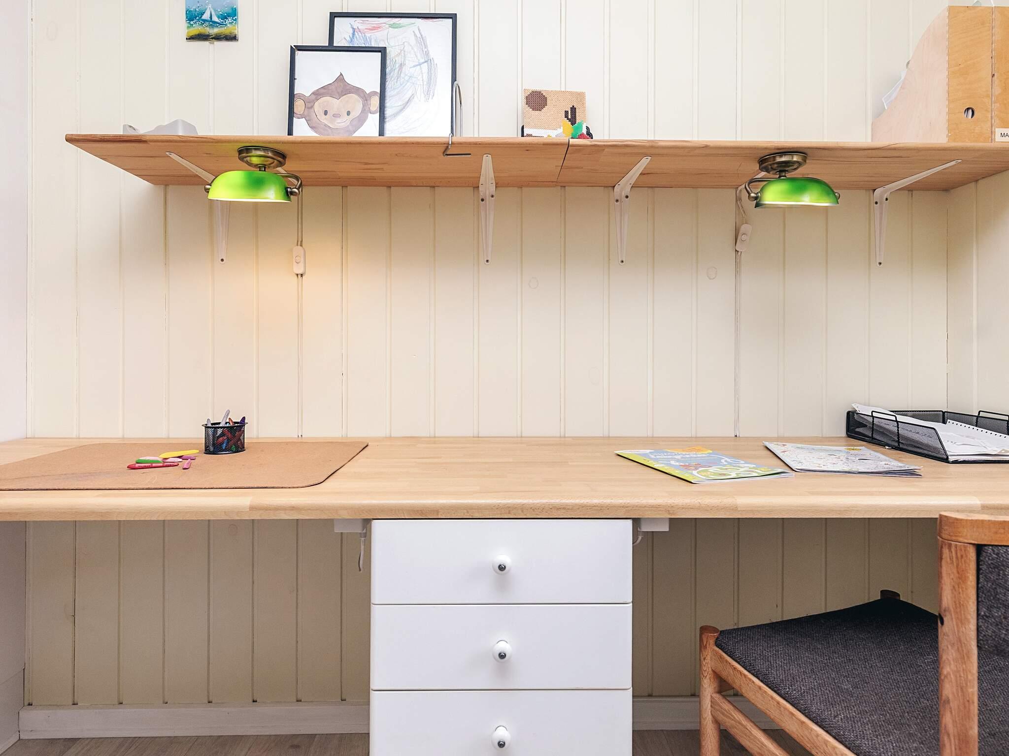 Das Ferienhaus verfügt über drei Schlafzimmer, eines mit Doppelbett, eines mit zwei Einzelbetten und das letzte Zimmer mit einem Etagenbett und einem Doppelbett im Anbau. Die offene Küche ist mit Kaffeemaschine, Induktionsherd, separatem Backofen, Kühlschrank und Geschirrspüler ausgestattet. Im Schuppen gegenüber der Eingangstür befindet sich ein 60-Liter-Gefrierschrank. Das Ferienhaus verfügt über zwei Badezimmer, eines mit Toilette und Waschbecken, das andere mit Toilette, Waschbecken, Dusche, Waschmaschine und Trockner. Das Wohnzimmer verfügt über einen Fernseher mit Chromecast und kostenlosem Internet sowie einen DVD-Player. Vom Wohnzimmer aus gelangt man auf eine halbüberdachte Terrasse und einen großen Garten.