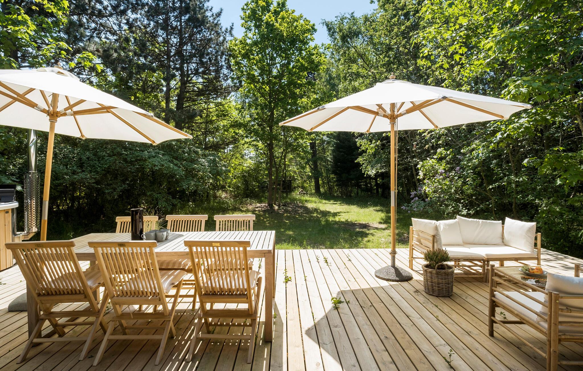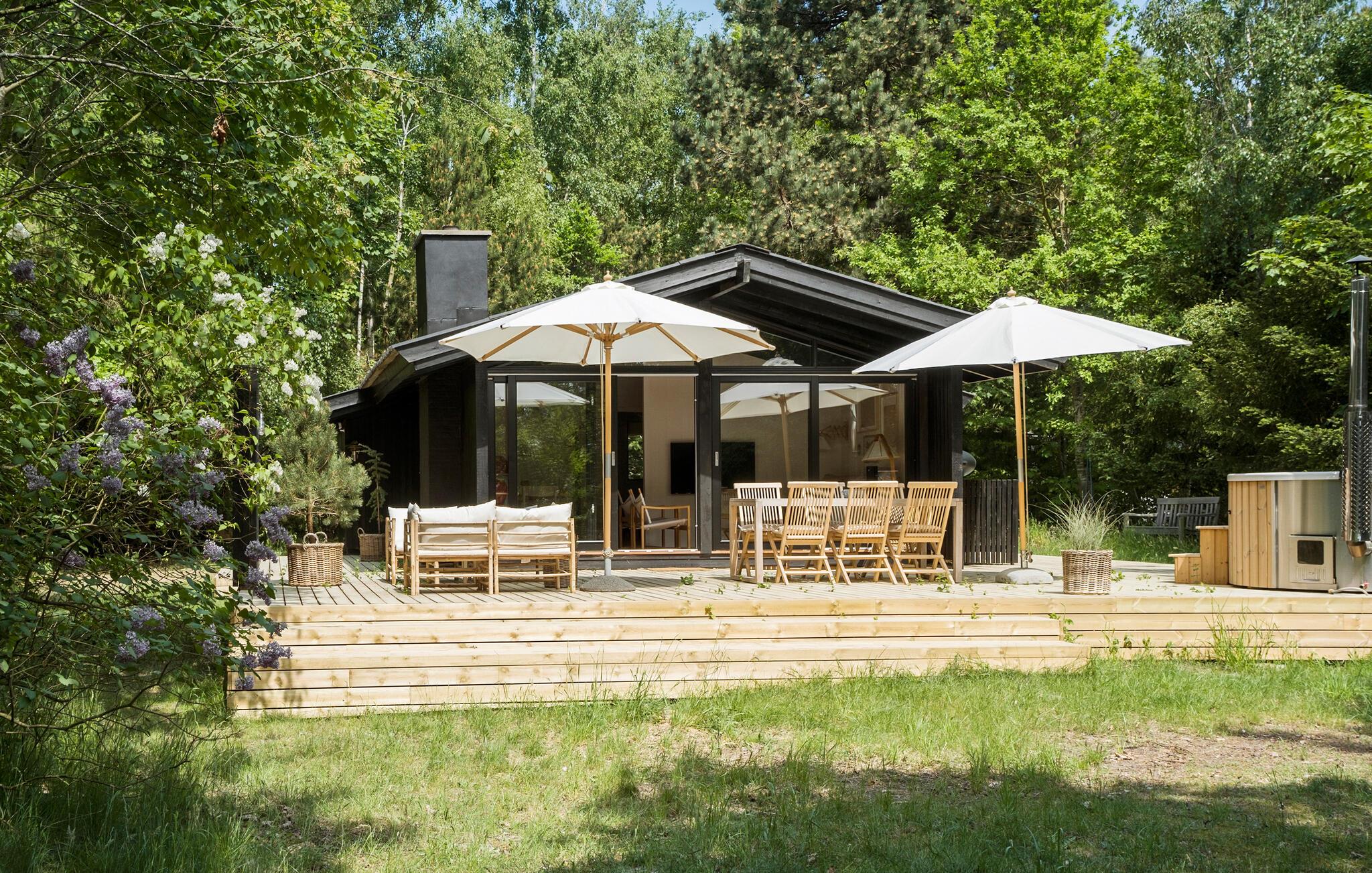 Gemütliches Ferienhaus mit Finnischem Holzbad und großer Terrasse nahe dem Meer in Dänemark.