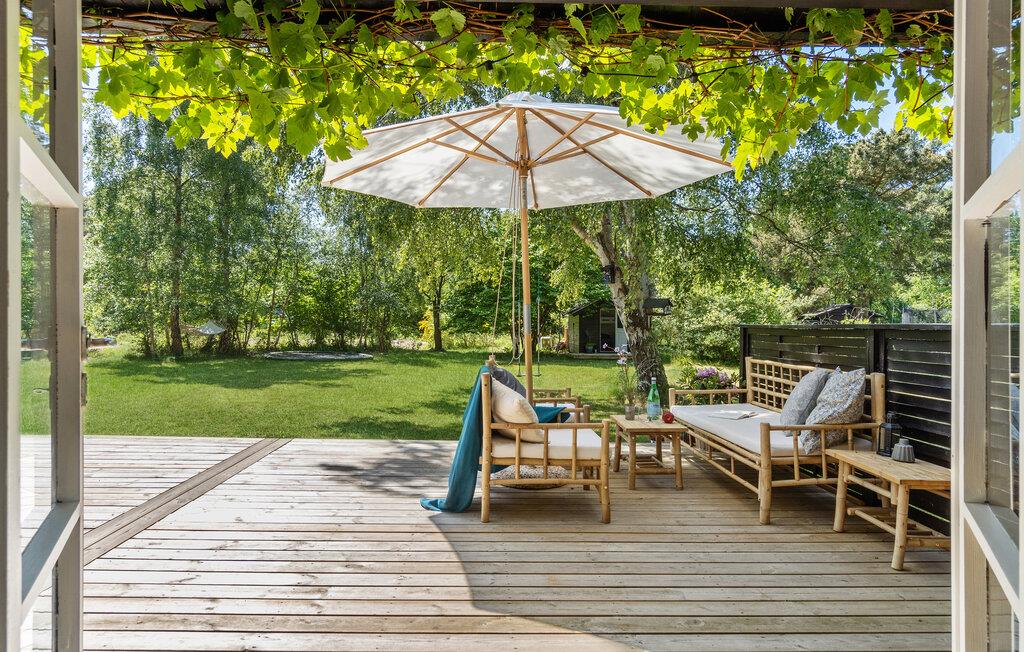 Treten Sie hinaus auf die großzügige Holzterrasse und lassen Sie sich in die komfortablen Loungemöbel fallen. Servieren Sie Ihr Frühstück unter den Weinranken und entspannen Sie in der Hängematte, während sich Ihre Kinder auf dem Trampolin austoben. Abends verwandelt sich die Terrasse in einen stimmungsvollen Ort für Grillabende unter dem Sternenhimmel.