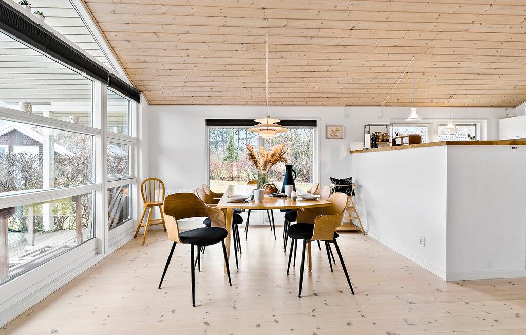Willkommen in Yderby Lyng Strand und diesem freundlichen und geschmackvollen Ferienhaus, das keine Ihrer Wünsche offenlässt. Die lichtdurchfluteten Räume und die offene Gestaltung lassen Ihren Ferienalltag beim Kochen, Spielen oder Relaxen miteinander verbinden. Die Einrichtung und Ausstattung lässt Sie dabei nichts vermissen.