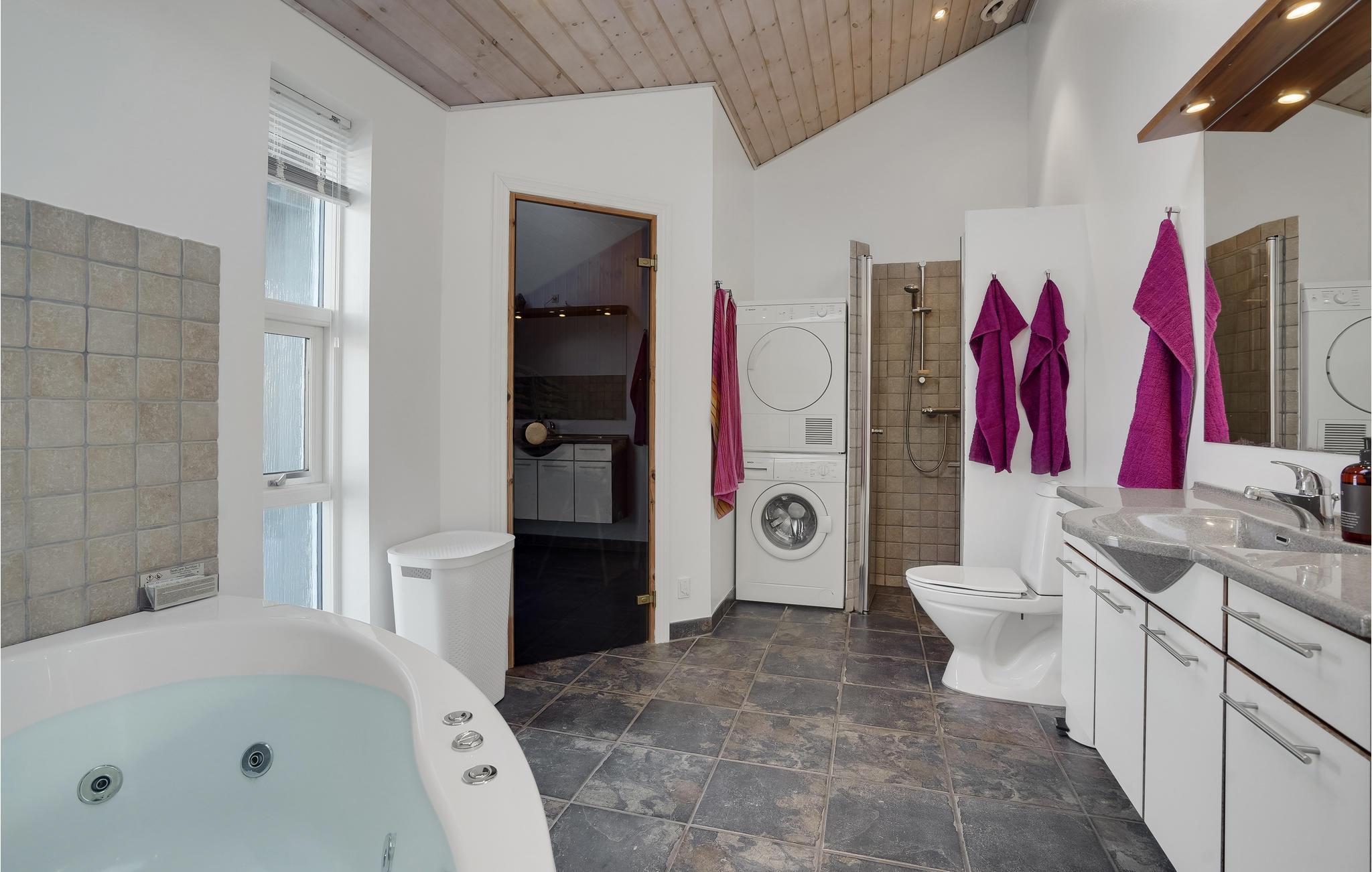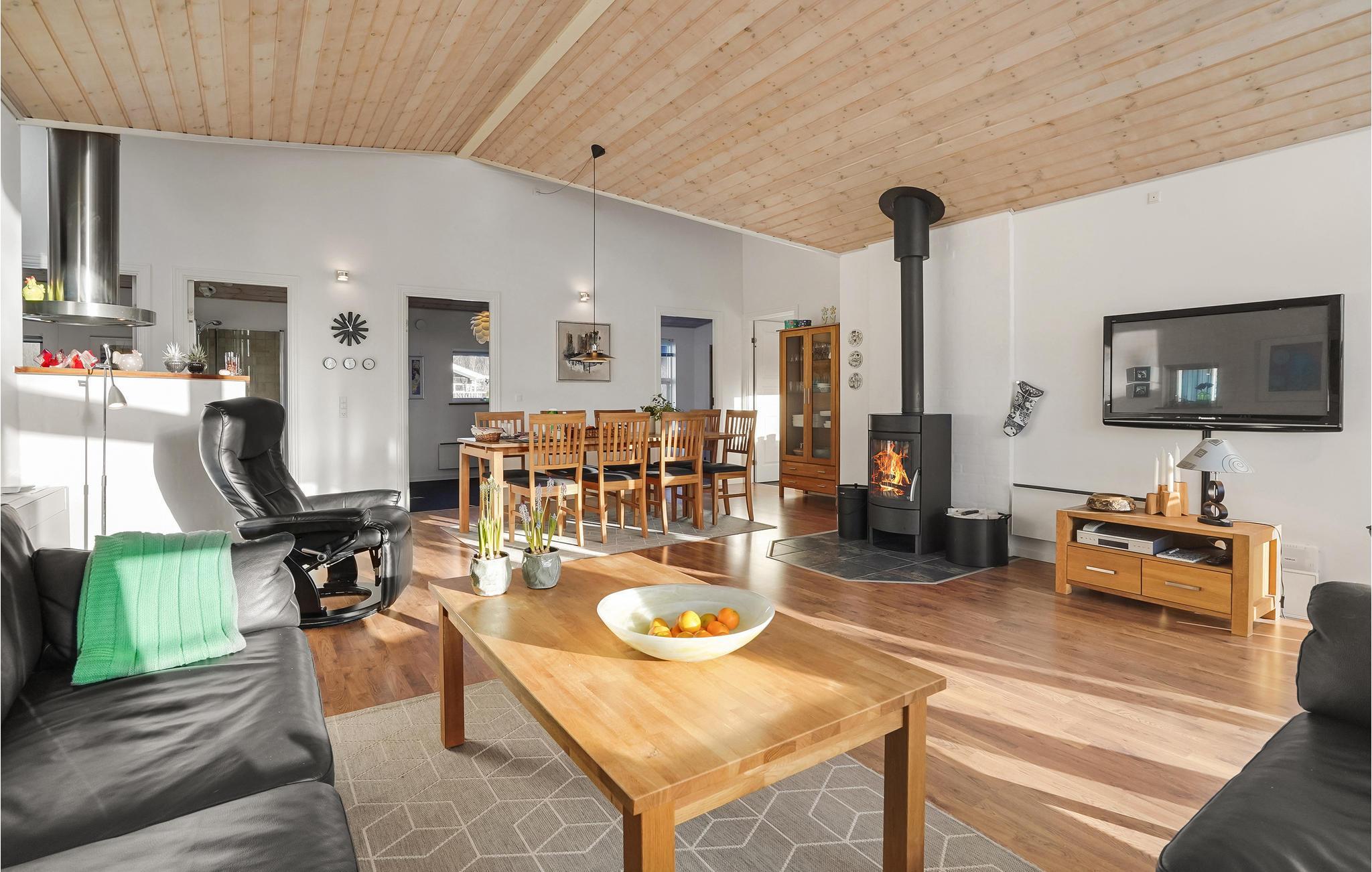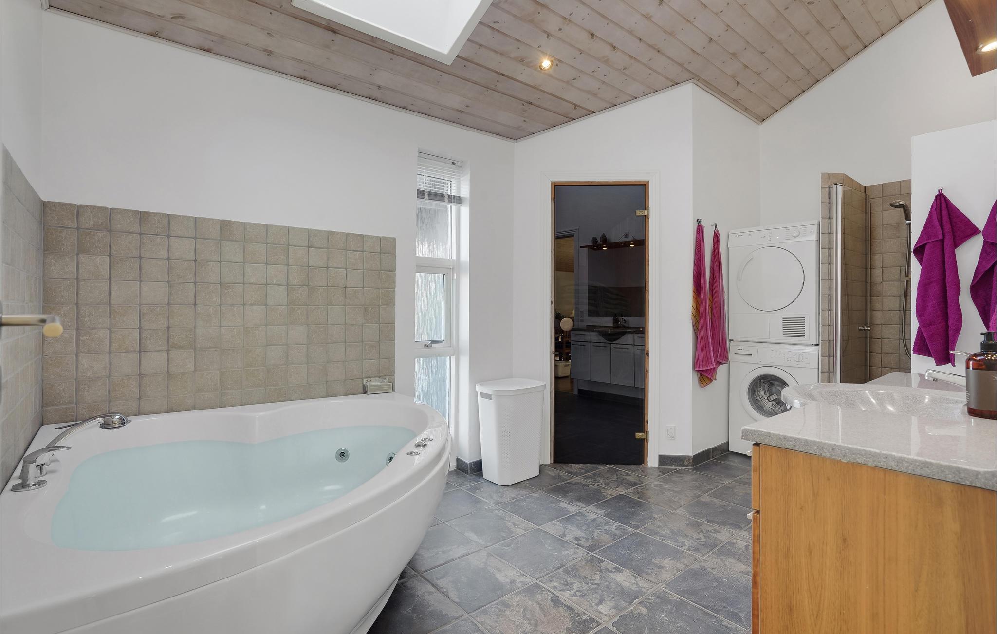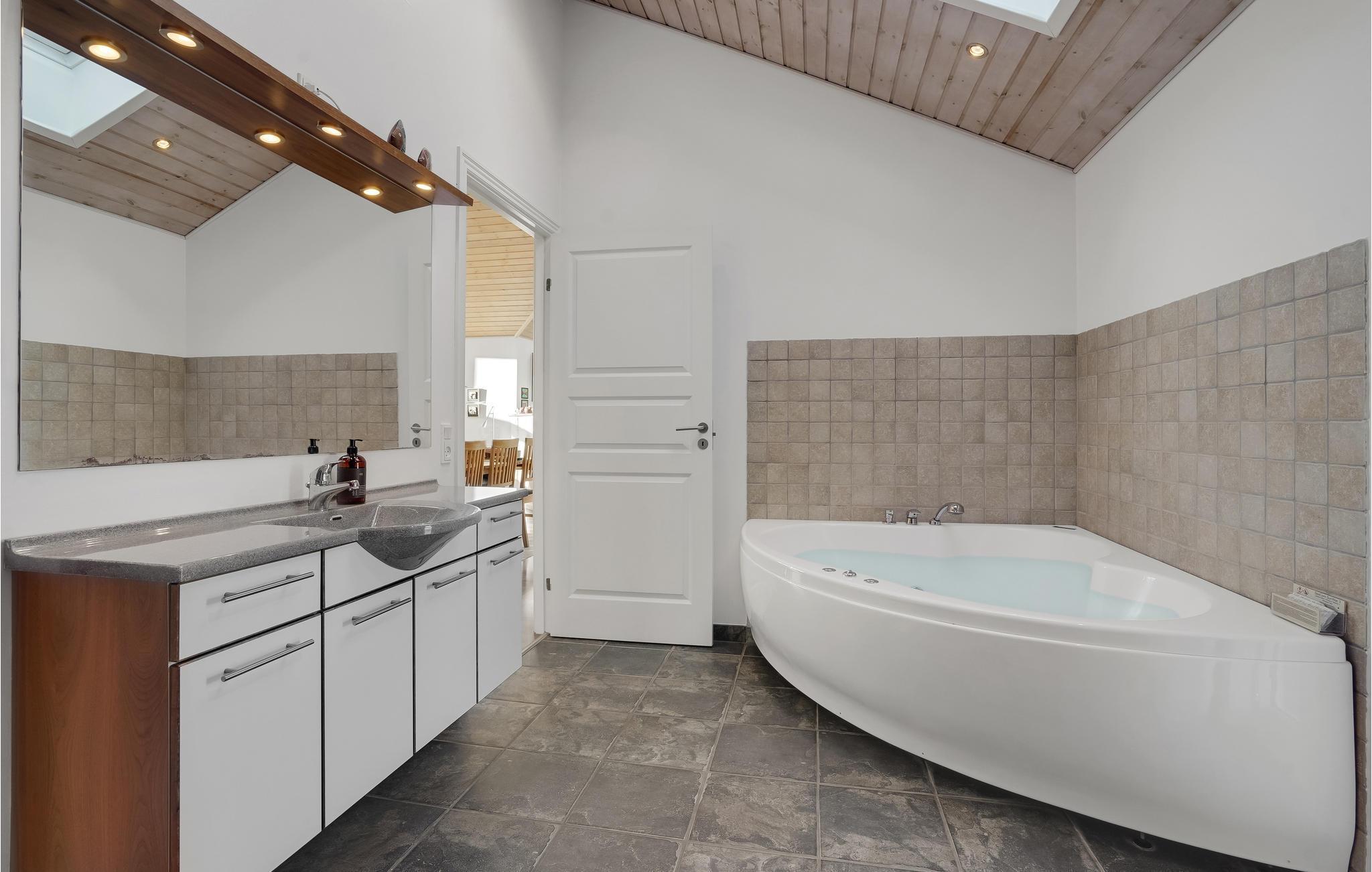 Schönes, geräumiges und gut ausgestattetes Ferienhaus, gut für 2 Familien geeignet. Hier ist viel Platz und Ausstattung zum Entspannen - entweder im Spabereich oder auf einer der schönen Terrassen. Die Terrasse nach Südwesten grenzt an einen Naturzaun, der den Garten abschirmt. Feuern Sie den Grill an und bereiten Sie leckere Urlaubsmahlzeiten zu, während die Kinder im Garten spielen. Mit unter 400 m ins Hallenbad und zum Spielplatz, Minigolf, Pétanque ist das Haus eines der beliebtesten in Arrild Ferieby. Weiters gibt es hier einen Angelsee, Golfplatz und Tennis.