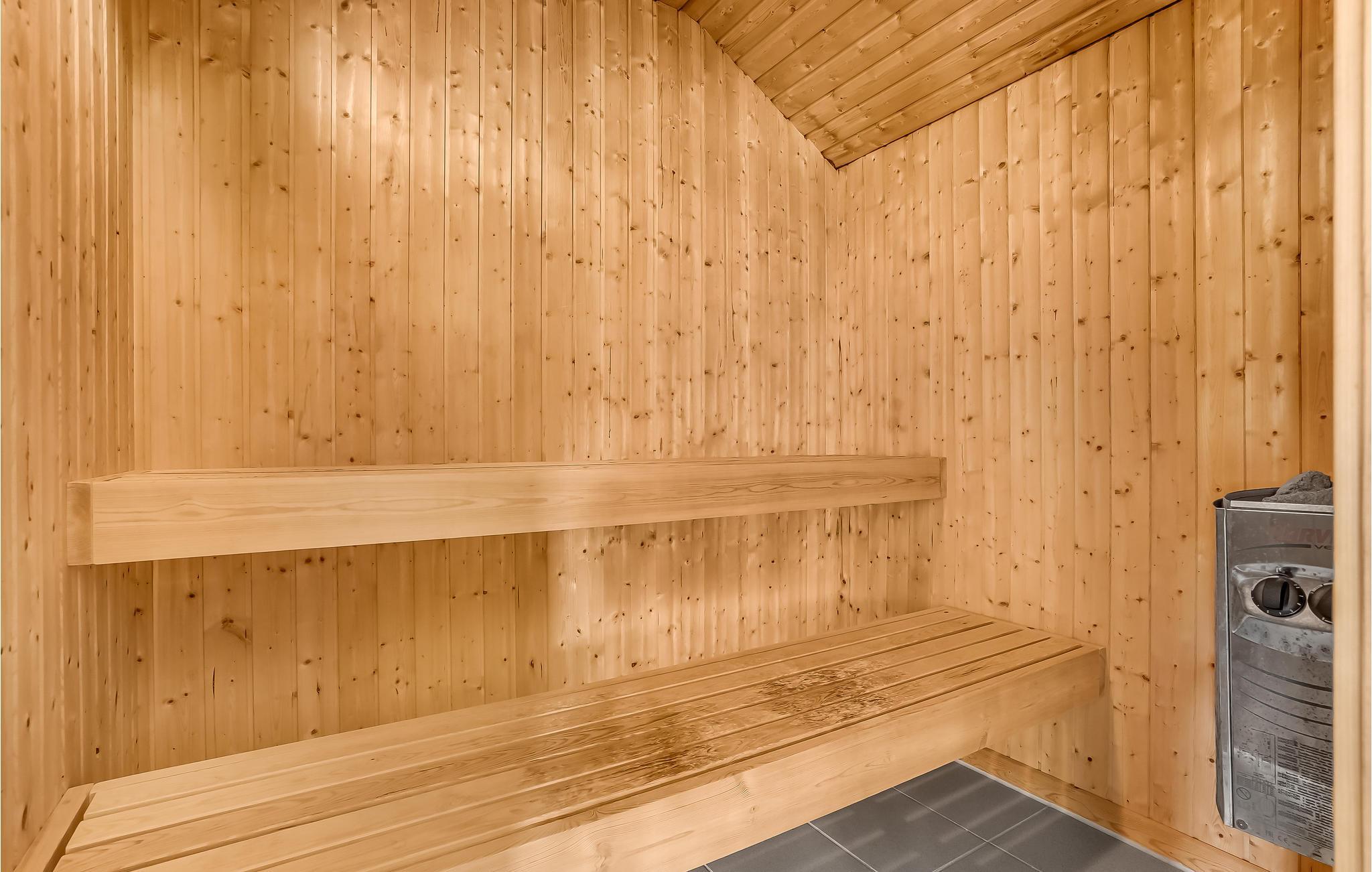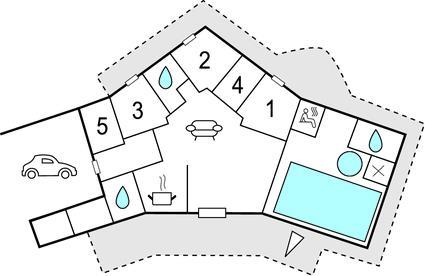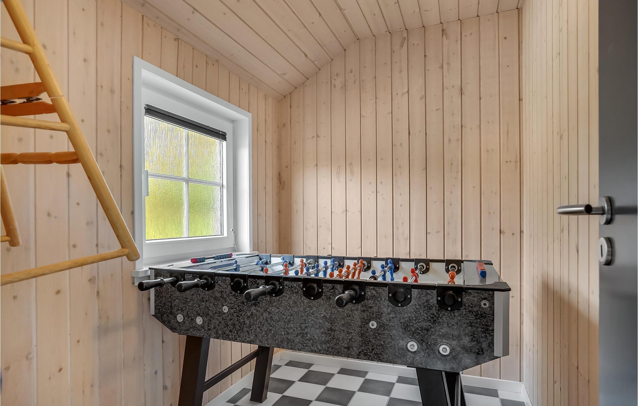 Ganz besonderes Ferienhaus, ein architektonisches Werk mit schiefen Winkeln undgutem Lichteinfall. Das Urlaubsgefühl unterstreichen auch die fünf Schlafzimmer und zwei Hemse, die für Ihre Kinder wie geschaffen sind. Einer besitzt Schlafgelegenheiten, der andere ist ein Spielzimmer. Großes, phantastische helles Wohnzimmer in der Mitte von Haus mit bis zum Giebel offener Decke und Dachfenstern. Freier Blick auf den Pool vom Wohnzimmer, das Zentrum des Urlaubsvergnügens. Hier liegen auch der Whirlpool und die Sauna. Draußen können Sie in vollen Zügen die Terrasse genießen, die fast das ganze Haus umschließt und den einen oder anderen Sonnenplatz bietet. Doppelter Carport gleich beim Hauseingang. Im Gehabstand sind der schöne Sandstrand, der Ort Blåvand und seine gute Auswahl an Geschäften zu finden.